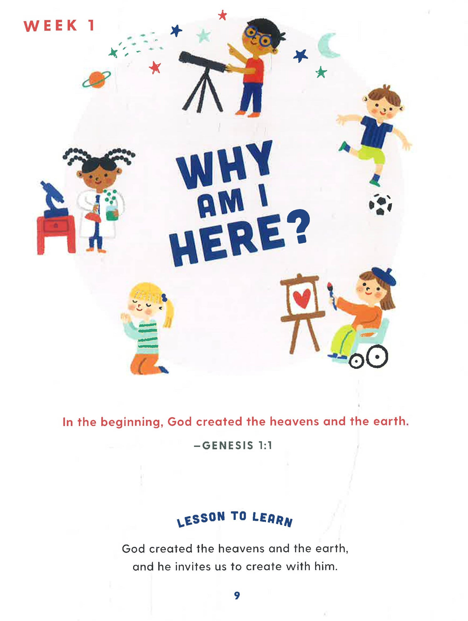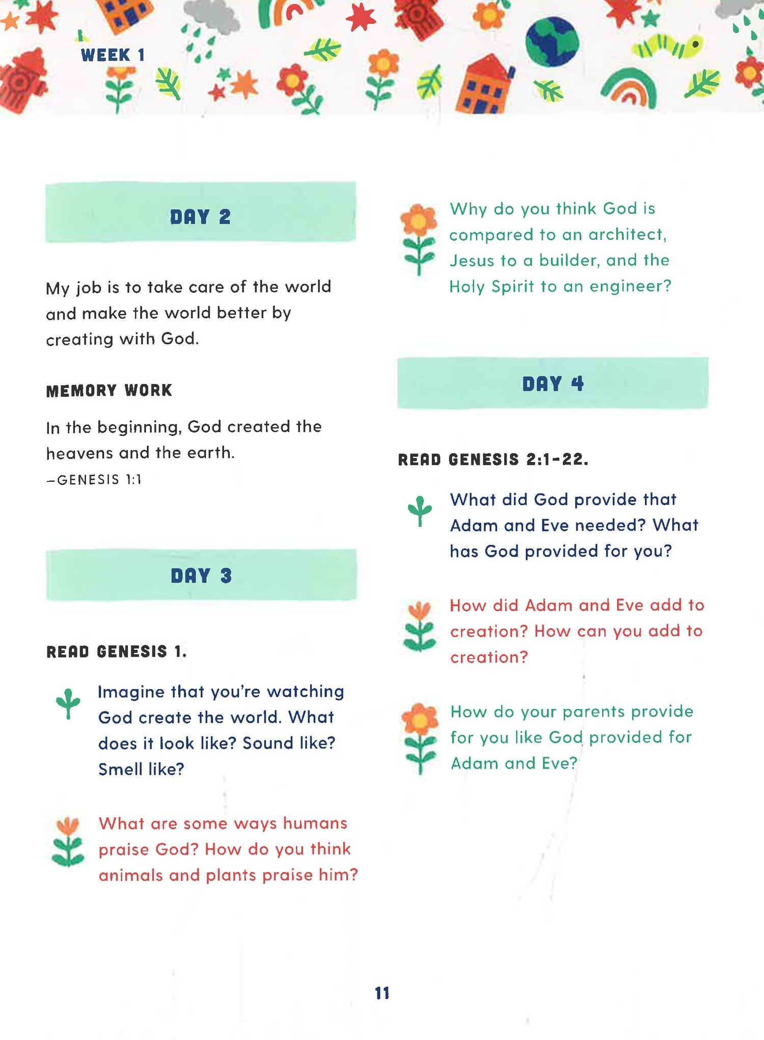 • Day 1―read the Bible verse and explanatory text and start a fun challenge