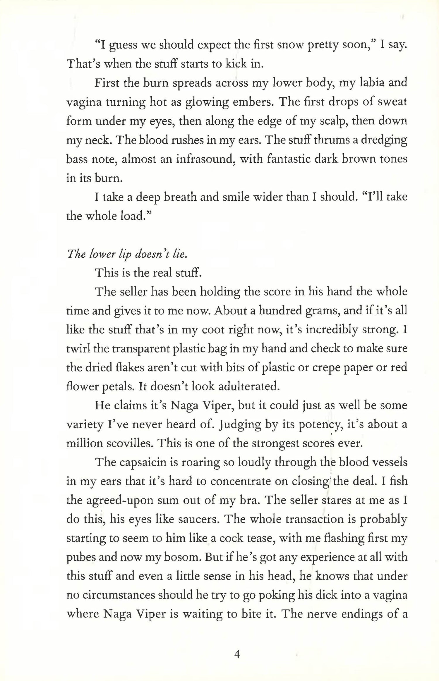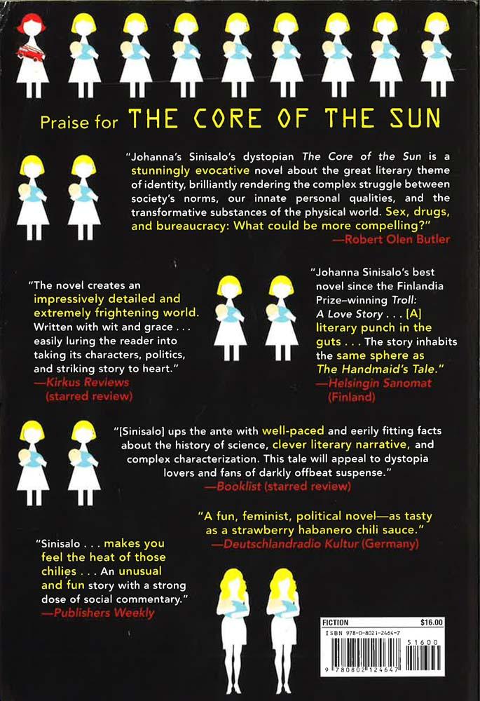 From the author of the Finlandia Award-winning novel Troll: A Love Story, The Core of the Sun further cements Johanna Sinisalo's reputation as a master of literary speculative fiction and of her country's unique take on it, dubbed "Finnish weird." Set in an alternative historical present, in a "eusistocracy"--an extreme welfare state--that holds public health and social stability above all else, it follows a young woman whose growing addiction to illegal chili peppers leads her on an adventure into a world where love, sex, and free will are all controlled by the state. The Eusistocratic Republic of Finland has bred a new human sub-species of receptive, submissive women, called eloi, for sex and procreation, while intelligent, independent women are relegated to menial labor and sterilized so that they do not carry on their "defective" line. Vanna, raised as an eloi but secretly intelligent, needs money to help her doll-like sister, who has disappeared. Vanna forms a friendship with a man named Jare, and they become involved in buying and selling a stimulant known to the Health Authority to be extremely dangerous: chili peppers. Then Jare comes across a strange religious cult in possession of the Core of the Sun, a chili so hot that it is rumored to cause hallucinations. Does this chili have effects that justify its prohibition? How did Finland turn into the North Korea of Europe? And will Vanna succeed in her quest to find her sister, or will her growing need to satisfy her chili addiction destroy her? Johanna Sinisalo's tautly told story of fight and flight is also a feisty, between-the-lines social polemic--a witty, inventive, and fiendishly engaging read.