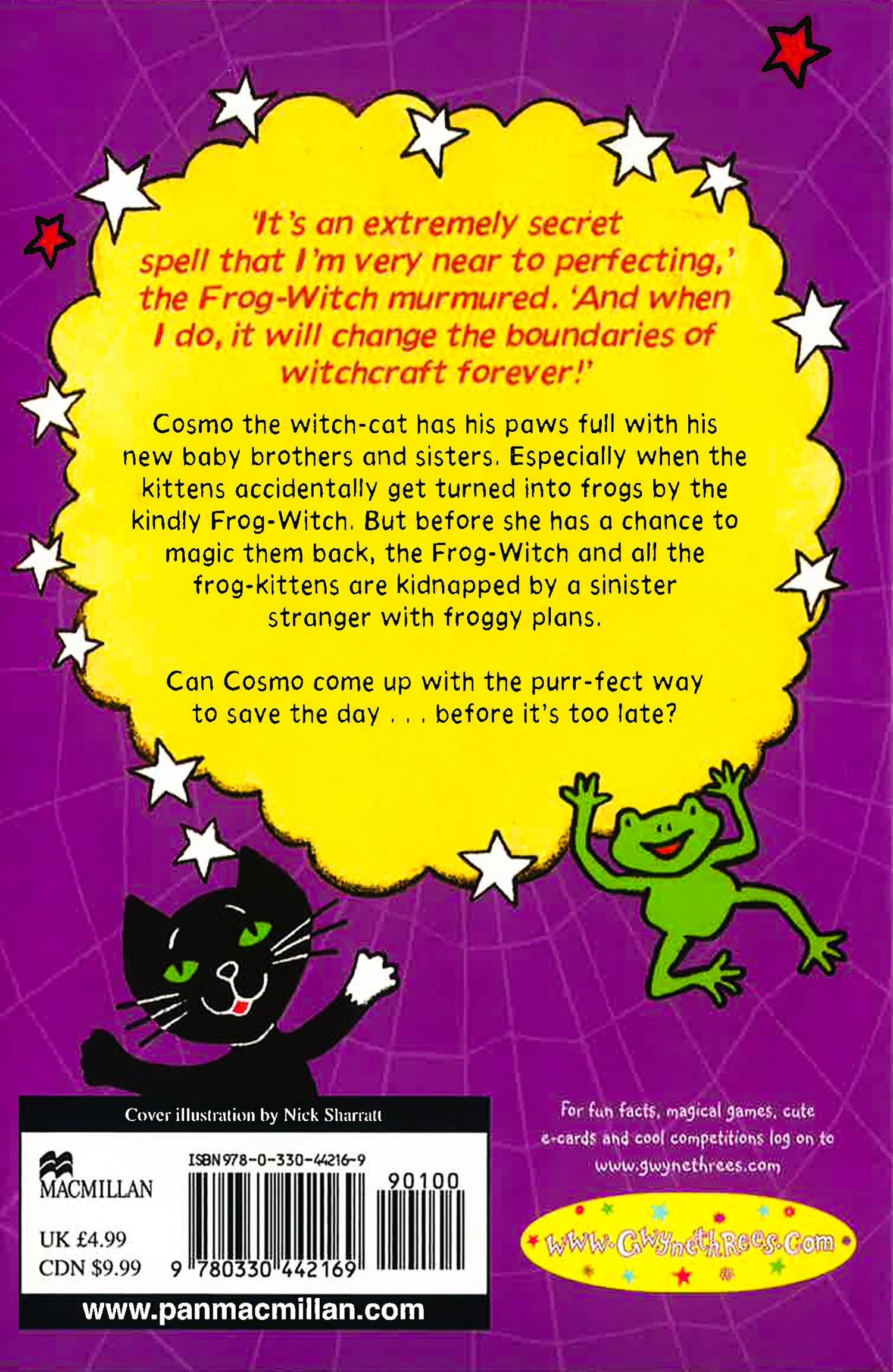 More from Cosmo the witch-cat, up to his paws in magical mischief Cosmo the witch-cat is back, andhe hashis paws full with his new brothers and sisters--especially when the kittens accidentally fall under the kindly frog-witchs spell and are turned into frogs themselves. Luckily, the clever witch says she knows how to turn them back. But before the frog-witch can even wiggle her wand, she and all of Cosmos kittensiblings are kidnapped by a mysterious stranger with a sinister plan for the witchs special frog spells. Can Cosmo come up with the purr-fect way to stop him before its too late? Gigglesome, spooky fun and an utterly ribbeting read!