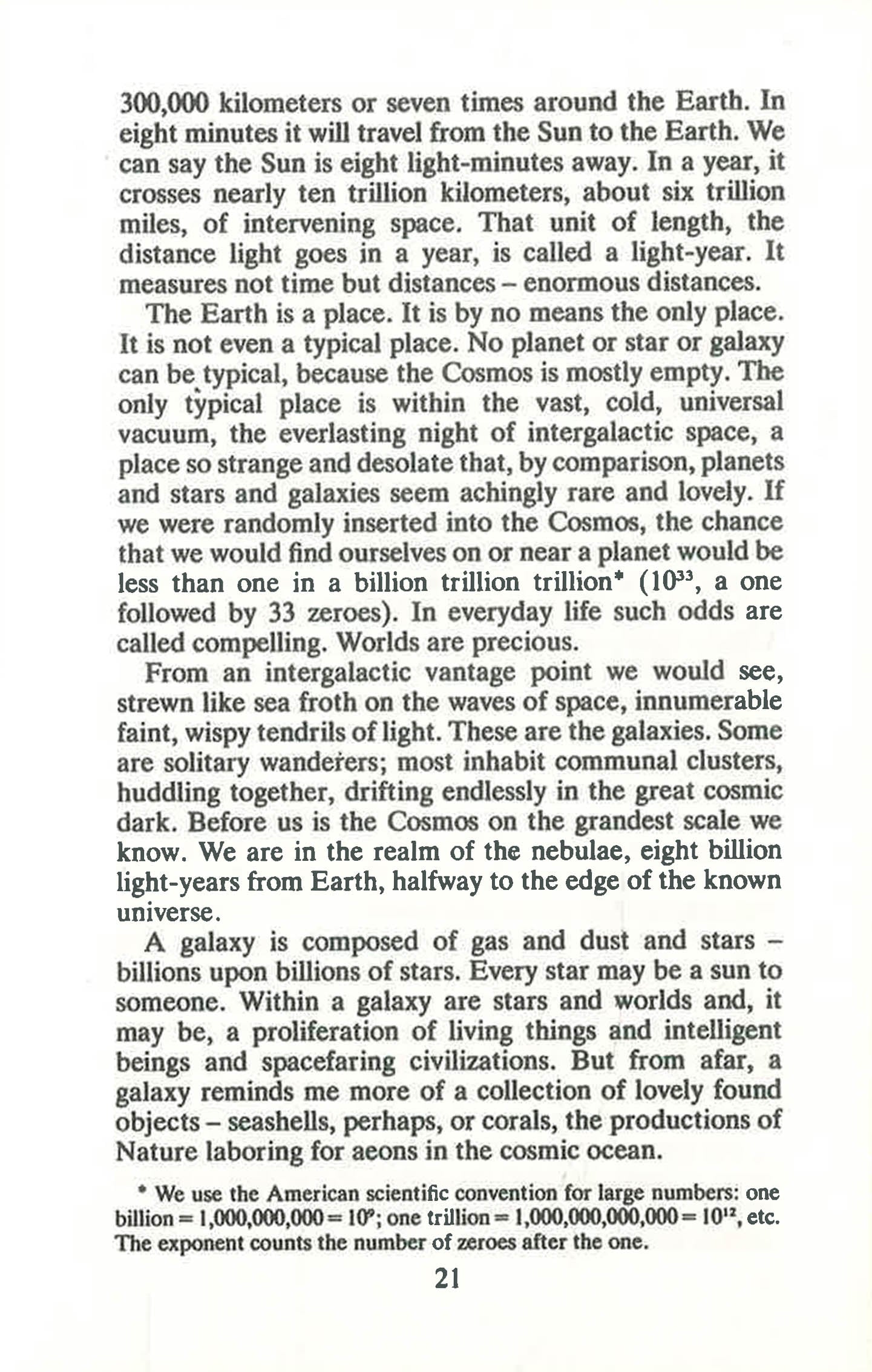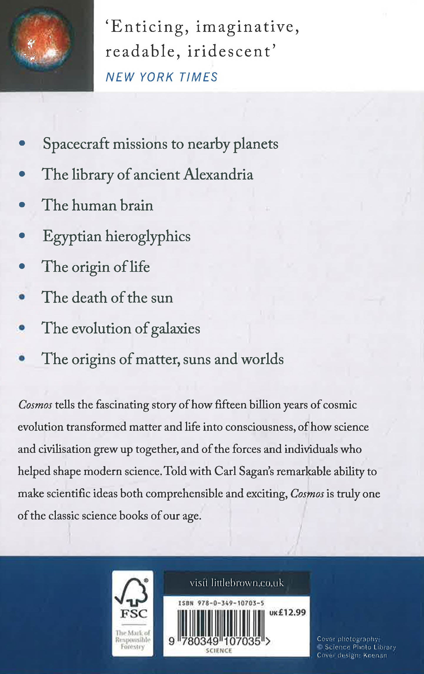 The story of fifteen billion years of cosmic evolution transforming matter and life into consciousness, of how science and civilisation grew up together, and of the forces and individuals who helped shape modern science. A story told with Carl Sagan's remarkable ability to make scientific ideas both comprehensible and exciting.
