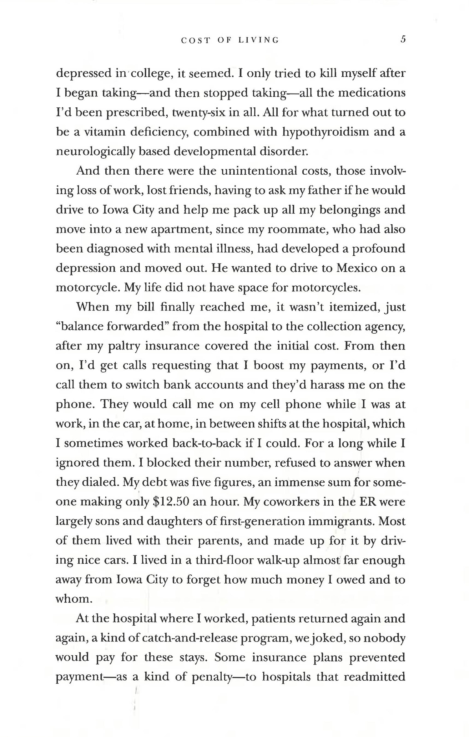 Shocking and often slyly humorous, Cost of Living is a brilliant examination of just what exactly our troubled healthcare system asks us to pay, as well as a look at what goes on behind the scenes at our hospitals and in the minds of caregivers.