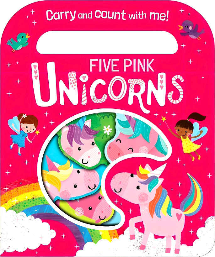 There are five magical pink unicorns to meet in this "Count and Carry" board book. Peek through the die-cut shaped windows to discover what each unicorn is doing and turn the page to count them down from 5 to 1. The rhyming story is fun to read aloud, with lots of sound words to call out, and the busy illustrations are full of magical things to find. With sturdy card pages, the book features a die-cut handle for on-the-move reading fun.
