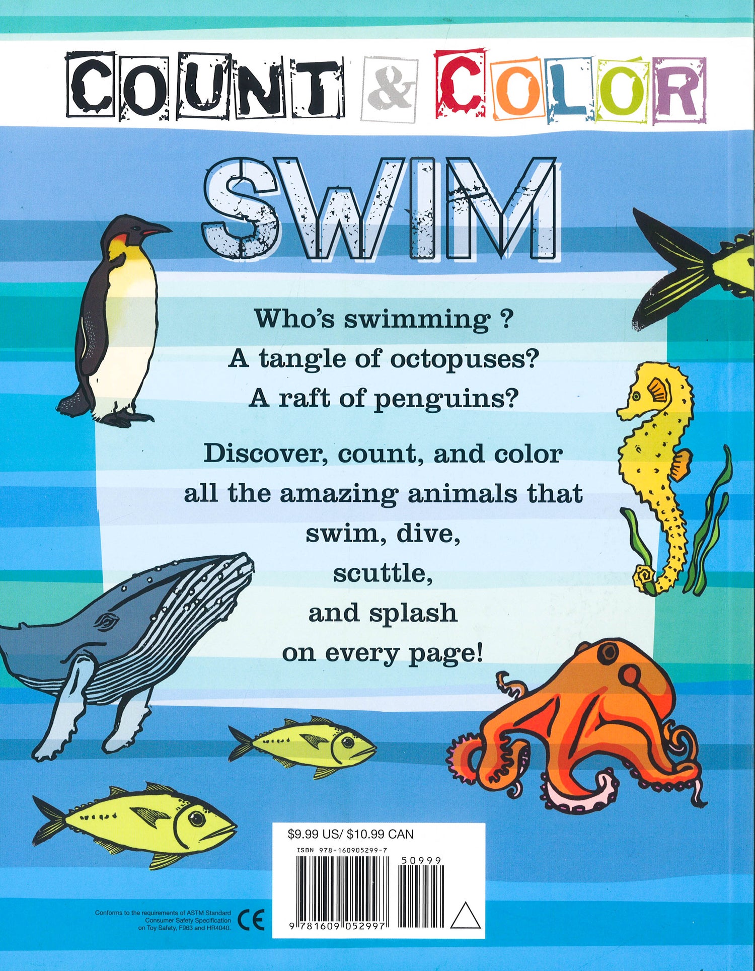 Animals under the sea and up in the air fly and swim on the pages of these not-your-average coloring books (see alsoCount and Color: Fly). Young artists will have a splash coloring in beautiful block prints of an amazing array of sea creatures and airborne animals - and will strengthen counting skills, learn a little about printmaking, and pick up a few fancy collective nouns, to boot - e.g., Is that a "tangle" of octopuses? A "parliament" of owls? How many dolphins are in a "pod"? Kids can count and color them all! These ideal quiet- or travel-time activity books provide absorbing, portable play for waiting rooms, plane rides, car trips, or restaurants (here's something fun to do while the grown-ups are finishing their coffee). There are high-flying, swim-tastic discoveries on every page!