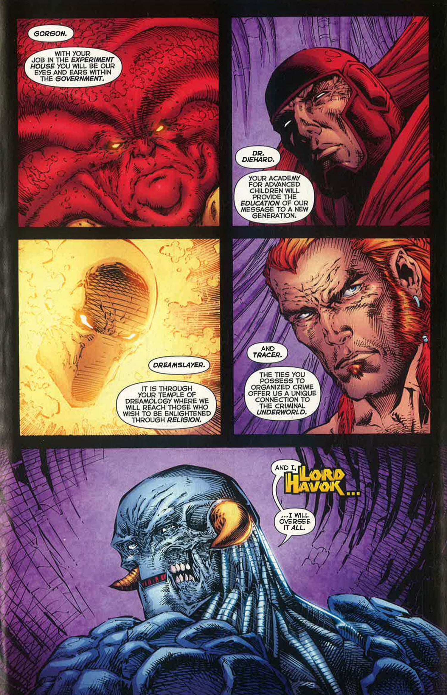 Written by Frank Tieri Cover by Liam Sharp Art by Liam Sharp, Rob Hunter. Mark Robinson and others Spinning out of COUNTDOWN TO FINAL CRISIS, this title collects the complete miseries by Frank Tieri and Liam Sharp. Discover why Lord Havok and his deadly team are so important to the future of the DCU - and how the fate of the multiverse lies in their hands. Advance-solicited; on sale August 20 - 144 pg, FC, $17.99 US
