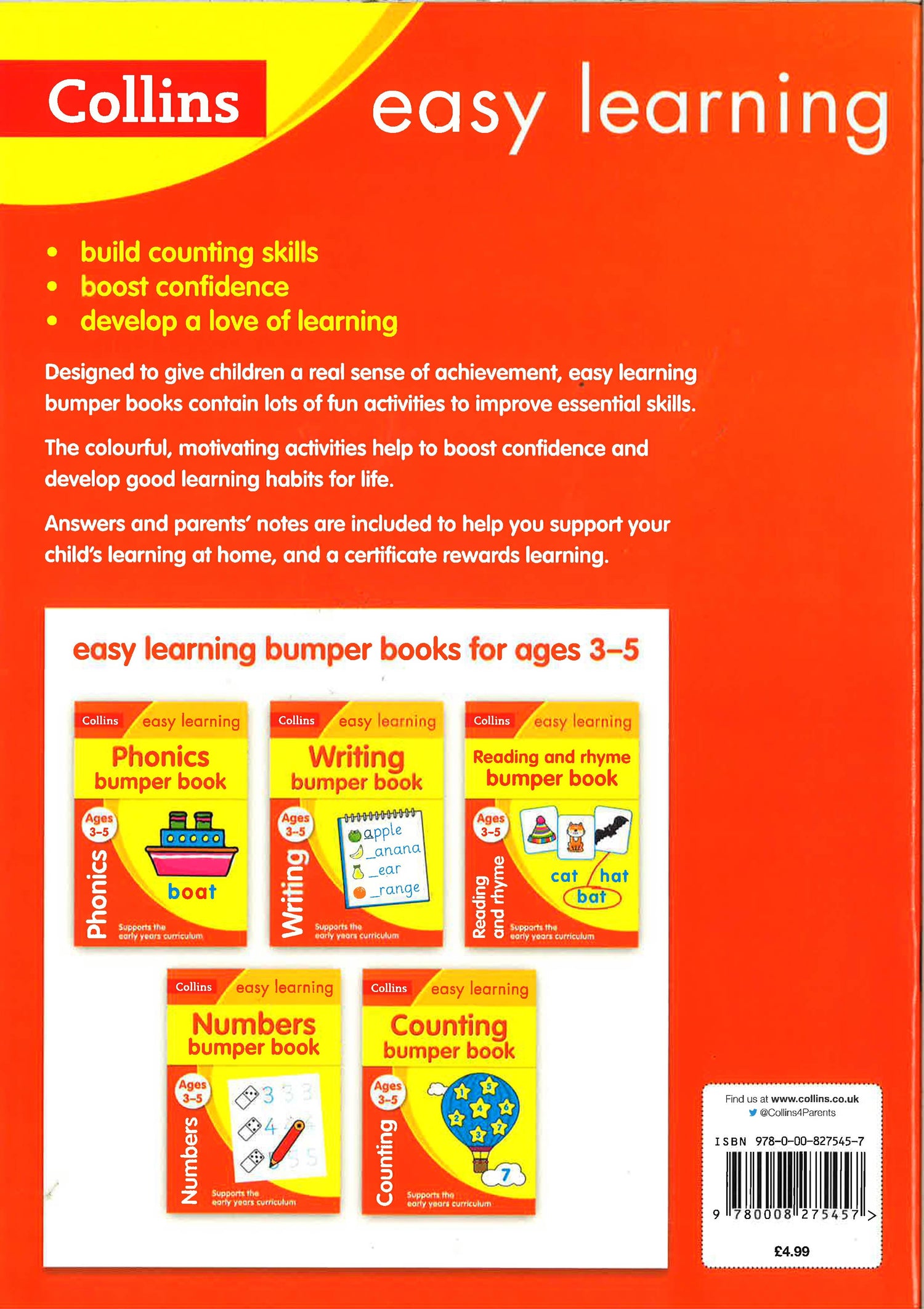 Combining useful Maths practice with engaging, colourful illustrations, this Counting bumper book helps to boost your child's confidence and develop good learning habits for life. Each fun activity is designed to give your child a real sense of achievement.