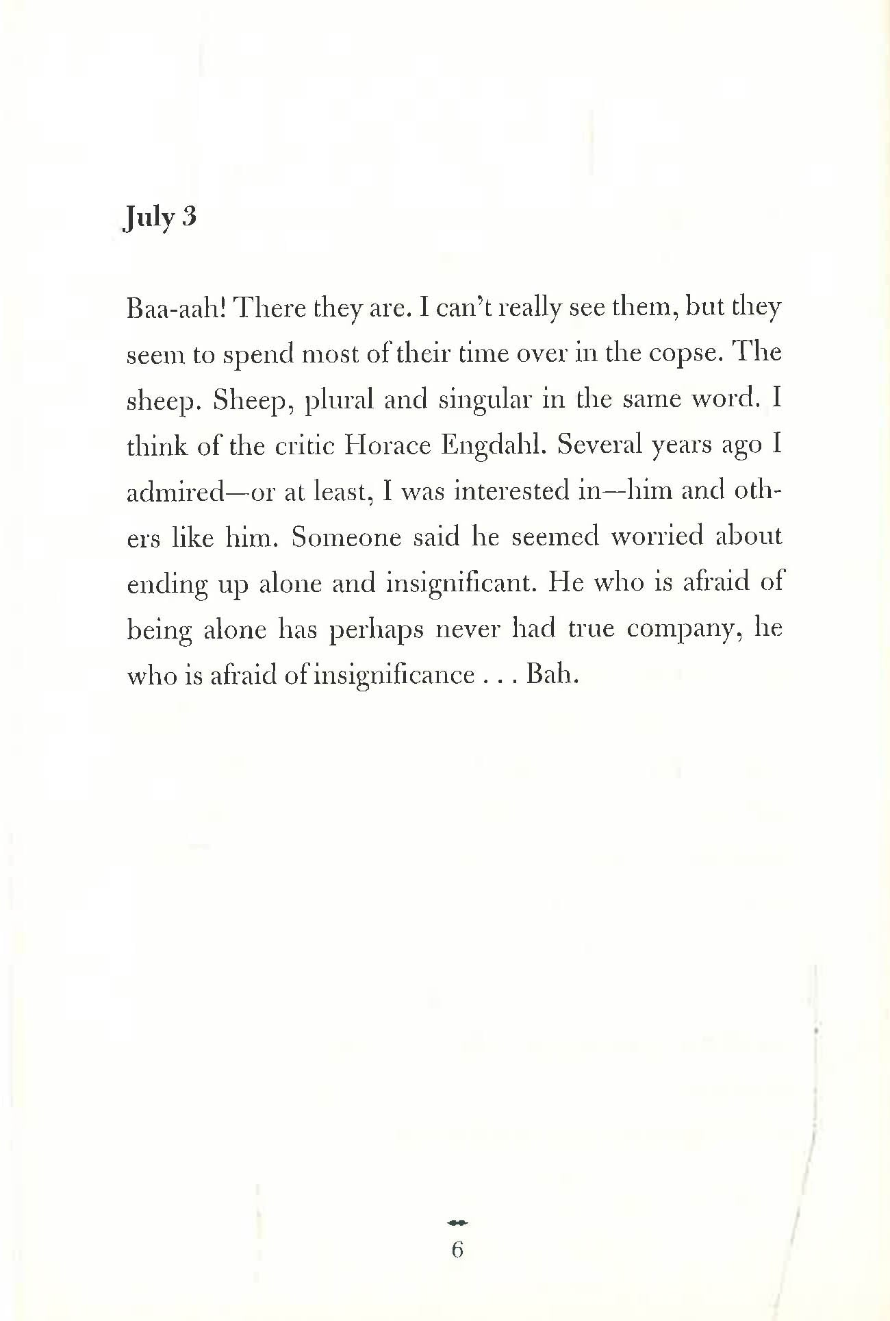 But as time passes and Axel slowly settles into the rhythms of the farm and shepherding, his naiveté fades away and is gradually replaced with a new appreciation of the spiritual and emotional value of manual labor, caring for other living things, and staying connected to the earth.