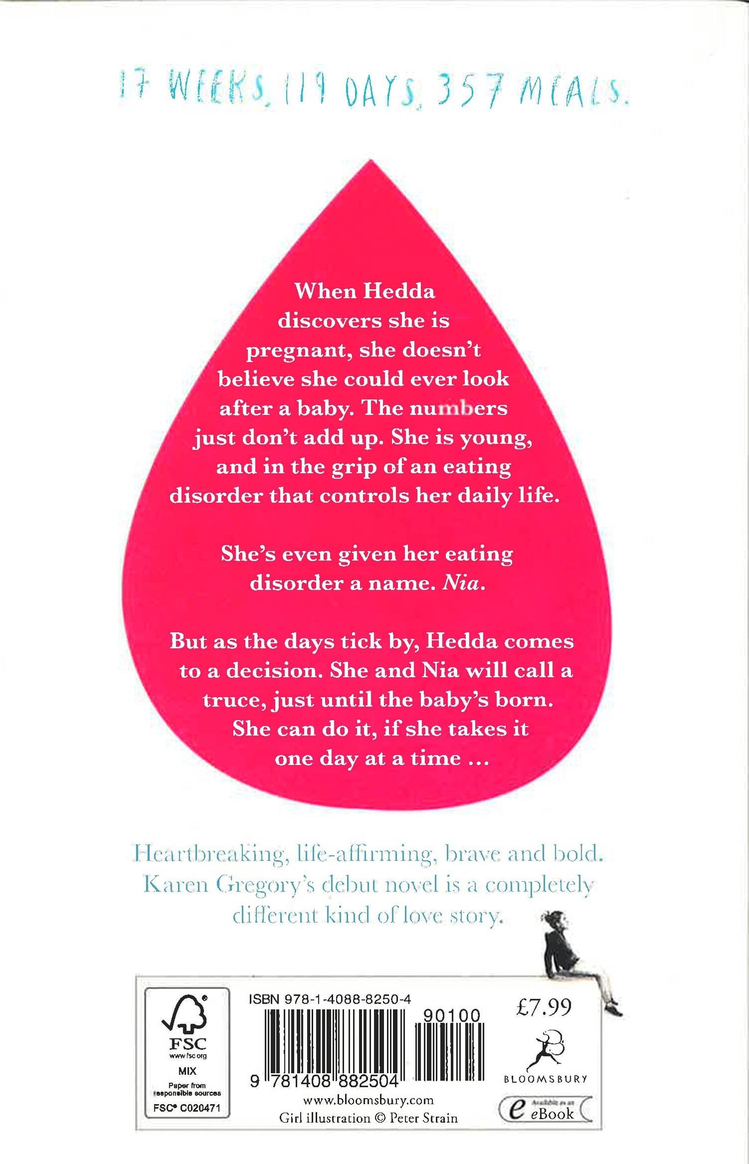 Heartbreaking, life-affirming, brave and bold - Karen Gregory's debut is a completely different kind of love story. 'Is there anything that's concerning you?' Felicity says. 'College, home, boyfriends?' Though she's more or less smiling at this last one. I don't smile. Instead, I feel my face go hot. Silence stretches as wide as an ocean. When I look up, Felicity has this expression on her face like she's just seen Elvis. Slowly, she leans forward and in a gentle voice I've never heard her use before she says, 'Have you done a pregnancy test?' When Hedda discovers she is pregnant, she doesn't believe she could ever look after a baby. The numbers just don't add up. She is young, and still in the grip of an eating disorder that controls every aspect of how she goes about her daily life. She's even given her eating disorder a name - Nia. But as the days tick by, Hedda comes to a decision: she and Nia will call a truce, just until the baby is born. 17 weeks, 119 days, 357 meals. She can do it, if she takes it one day at a time ... Heartbreaking and hopeful by turns, Karen Gregory's debut novel is a story of love, heartache and human resilience. And how the things that matter most can't be counted.