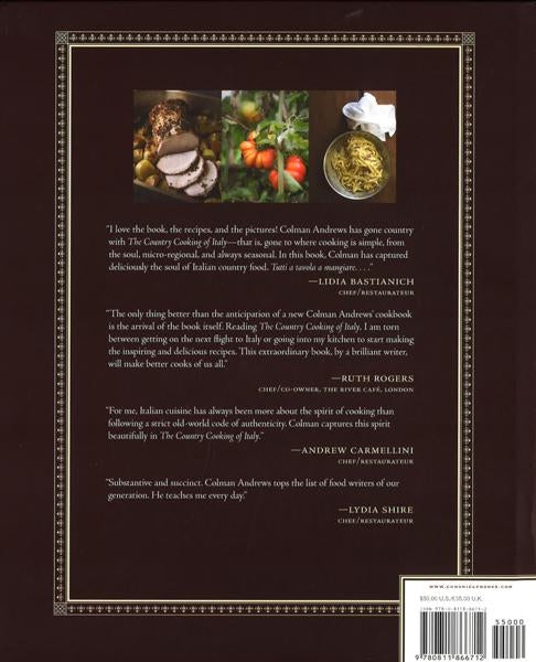 Following the success of their 2010 James Beard Foundation Best Cookbook of the Year, The Country Cooking of Ireland, Colman Andrews and Christopher Hirsheimer achieve the formidable feat of illuminating the world's most beloved cuisine in an entirely new light. Drawing on more than 40 years of experience traveling and eating in Italy, Andrews explores every region, from Piedmont to Puglia, and provides the fascinating origins of dishes both familiar and unexpected. This gloriously photographed keepsake depicts an ingredient-focused culture deeply rooted in rural traditions, in which even the most sophisticated dishes derive from more basic fare. With 230 sumptuous recipes highlighting the abundant flavors of the land, all set against the backdrop of Andrews vivid storytelling and Hirsheimer's evocative images, this luxe package is sure to delight home chefs and lovers of Italian food alike.