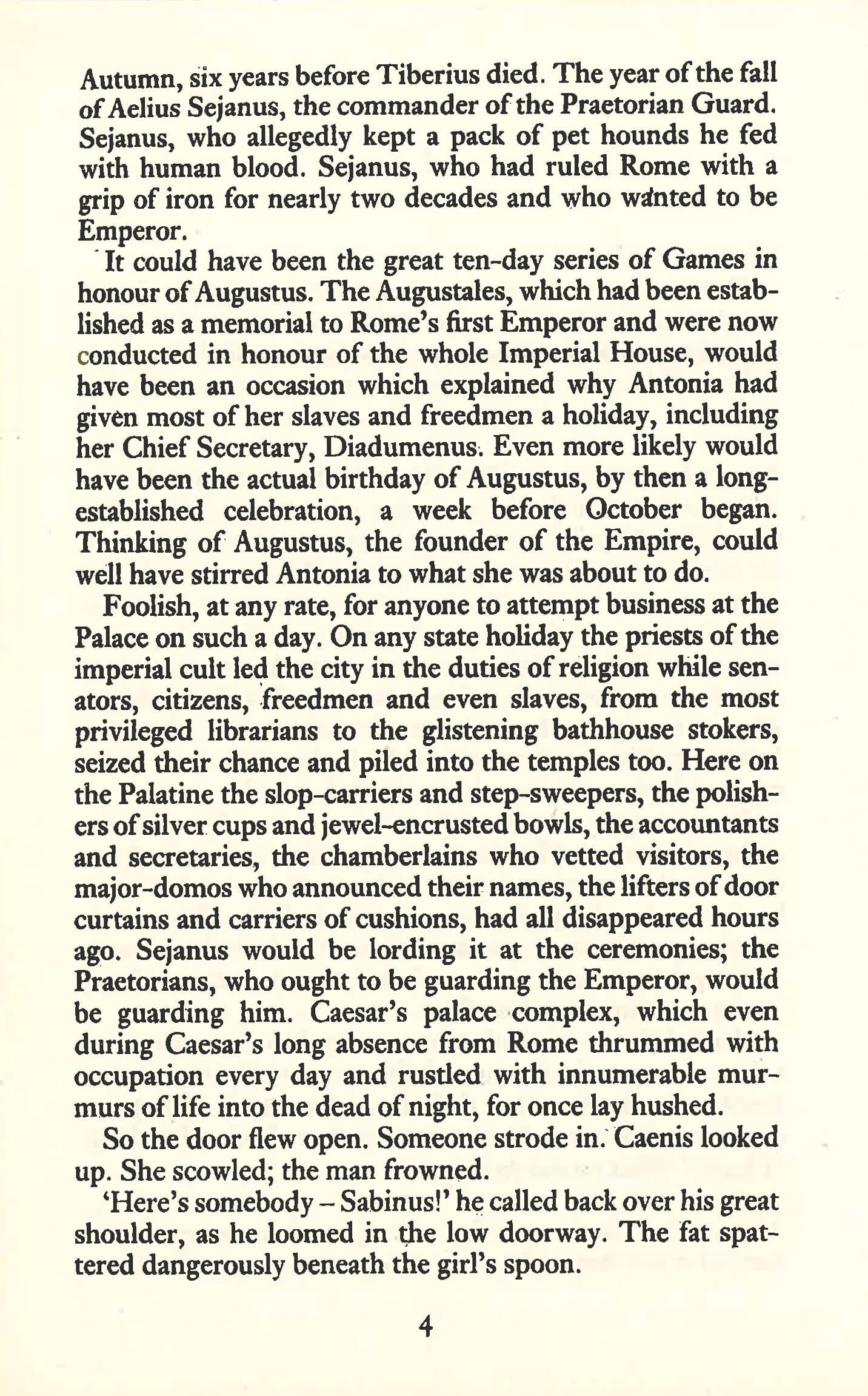 The love story of the Emperor Vespasian, who brought peace to Rome after years of strife, and his mistress, the freed slave woman Caenis, this book recreates Ancient Rome's most turbulent period - the reigns of Tiberius, Caligula, Claudius and Nero and Vespasian's rise to power.