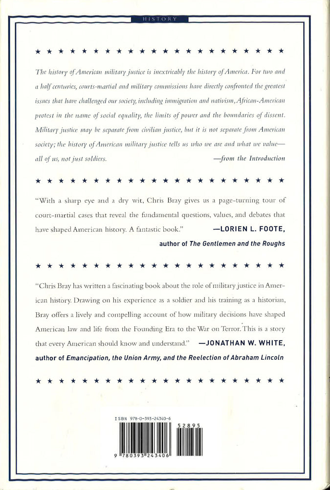 Historian Chris Bray (a former soldier) tells the sweeping story of military justice from the institution of the American court martial in the earliest days of the Republic to contemporary arguments over how to use military courts to try foreign terrorists or soldiers accused of sexual assault.