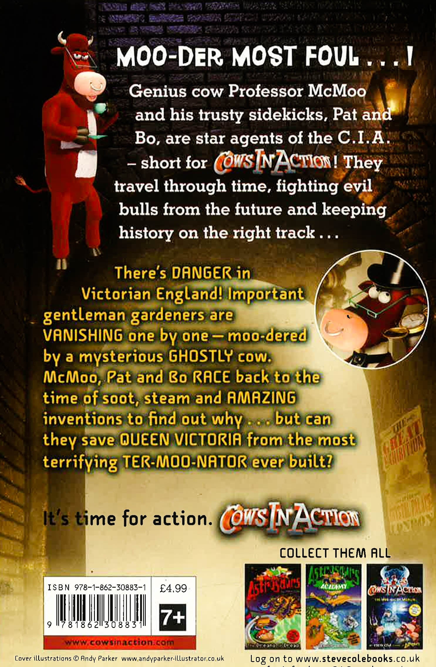 MOO-DER MOST FOUL . . . ! Join Professor McMoo and his team on another exciting Cows in Action adventure. Genius cow Professor McMoo and his trusty sidekicks, Pat and Bo, are star agents of the C.I.A. - short for COWS IN ACTION! They travel through time, fighting evil bulls from the future and keeping history on the right track . . . There's DANGER in Victorian England! Important gentleman gardeners are VANISHING one by one - moo-dered by a mysterious GHOSTLY cow. Why is this F.B.I. phantom attacking plant experts? McMoo, Pat and Bo RACE back to the time of soot, steam and AMAZING inventions to find out . . . but can even they save QUEEN VICTORIA from the most terrifying TER-MOO-NATOR ever built? Perfect for children ready to start reading chapter books by themselves.