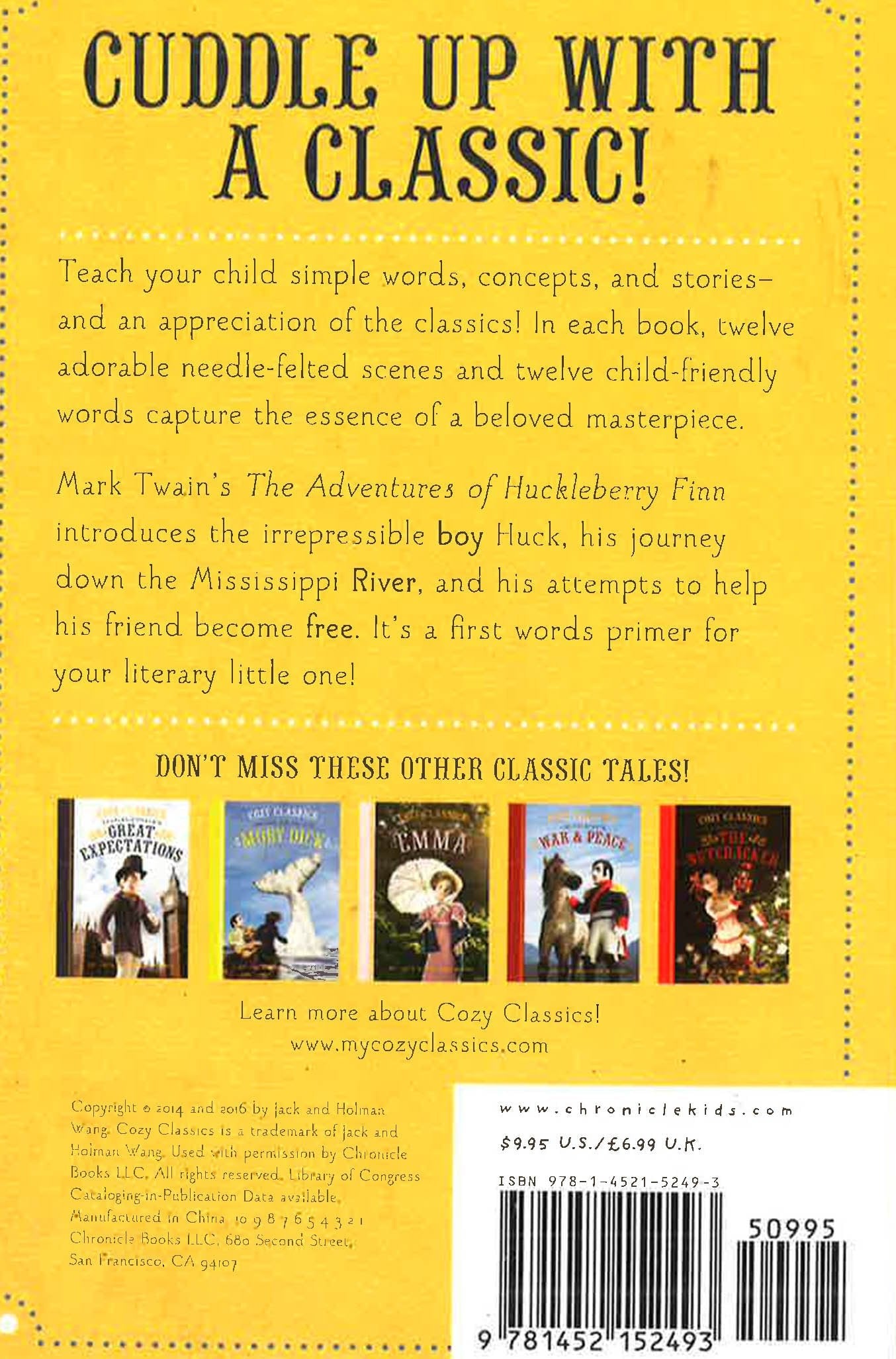 The Cozy Classics series stages handcrafted felt puppets in scenes from classic literature and illustrates the plots of canonical texts using twelve words total per book, one word per scene, in a way that accurately and humourously summarises each book's plot. It's Great Books for toddlers and their parents-a little bit serious, a little bit ironic and entirely funny and clever. This title expertly adapts Mark Twain's classic, The Adventures of Huckleberry Finn.