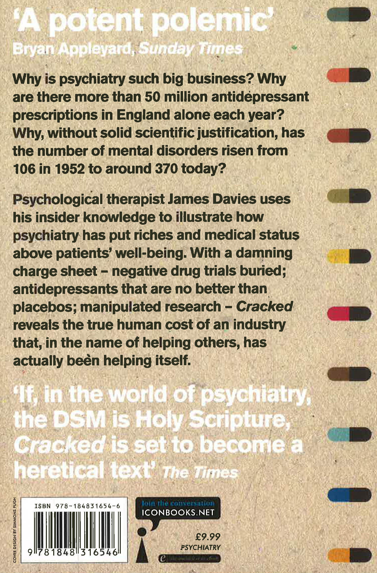 Why is psychiatry such big business? Why are so many psychiatric drugs prescribed - 47 million antidepressant prescriptions in the UK alone last year - and why, without solid scientific justification, has the number of mental disorders risen from 106 in 1952 to 374 today? The everyday sufferings and setbacks of life are now 'medicalised' into illnesses that require treatment - usually with highly profitable drugs. Psychological therapist James Davies uses his insider knowledge to illustrate for a general readership how psychiatry has put riches and medical status above patients' well-being. The charge sheet is damning: negative drug trials routinely buried; antidepressants that work no better than placebos; research regularly manipulated to produce positive results; doctors, seduced by huge pharmaceutical rewards, creating more disorders and prescribing more pills; and ethical, scientific and treatment flaws unscrupulously concealed by mass-marketing. Cracked reveals for the first time the true human cost of an industry that, in the name of helping others, has actually been helping itself.