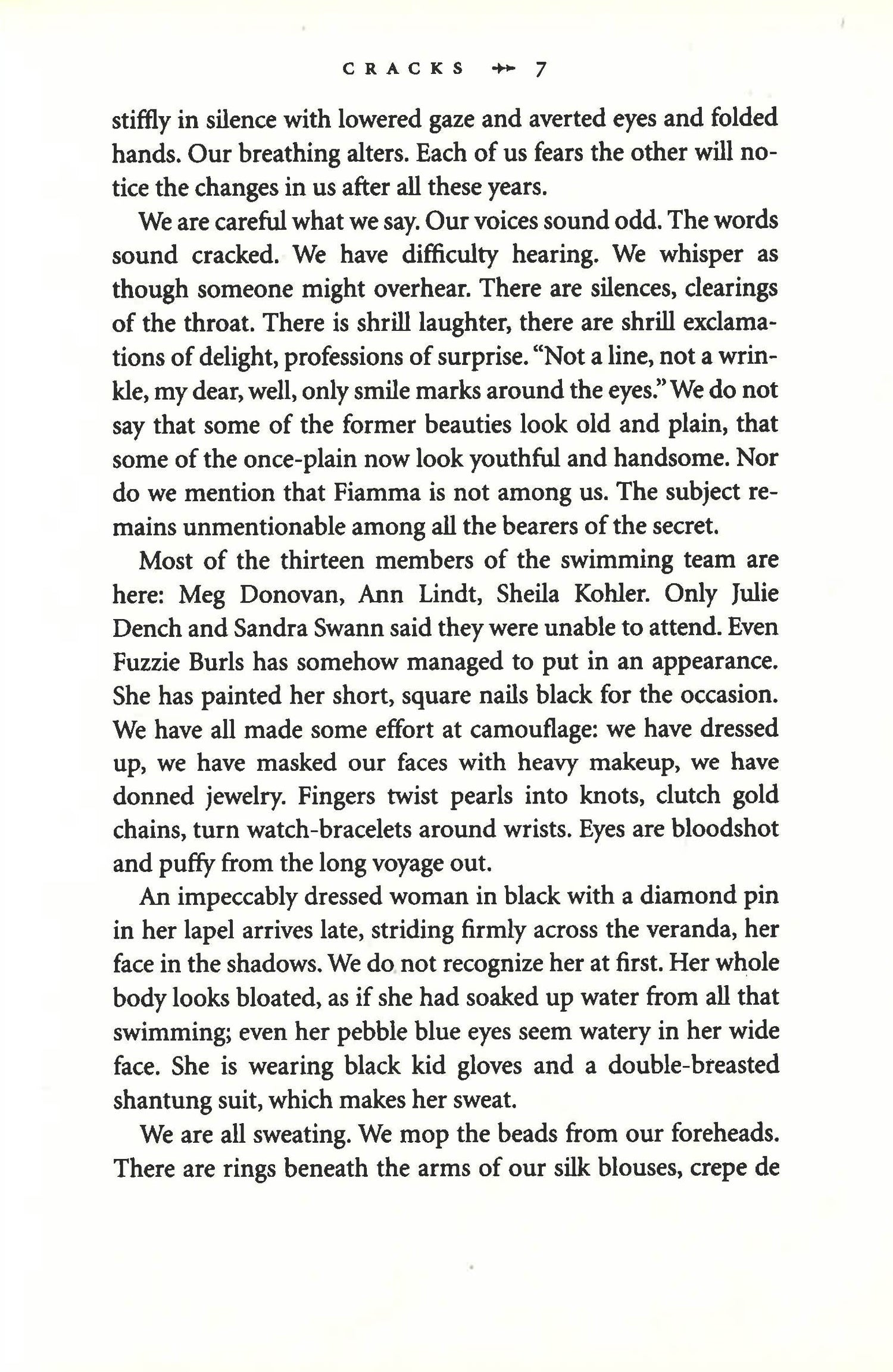 In Sheila Kohler's brilliant 1999 novel, a beautiful schoolgirl mysteriously disappears into the South African veld. Forty years later, thirteen members of the missing girl's swimming team gather at their old boarding school for a reunion, and look back to the long, dry weeks leading to Fiamma's disappearance. As teenage memories and emotions resurface, the women relive the horror of a long-buried secret. A stunning and singular tale of the passion and tribalism of adolescence, Cracks lays bare the violence that lurks in the heart of even the most innocent.