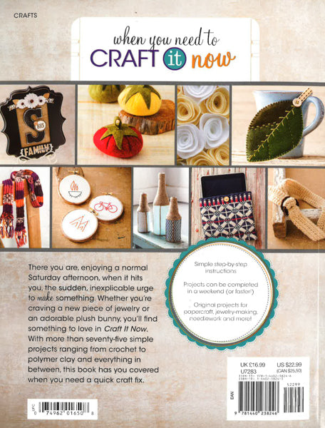 There you are, enjoying a normal Saturday afternoon, when it hits you, the sudden, inexplicable urge to make something. Whether you're carving a new piece of jewelry or an adorable plush bunny, you'll find something to love in Craft It Now. With more than seventy-five simple projects ranging from crochet to polymer clay and everything in between, this book has you covered when you need a quick craft fix.