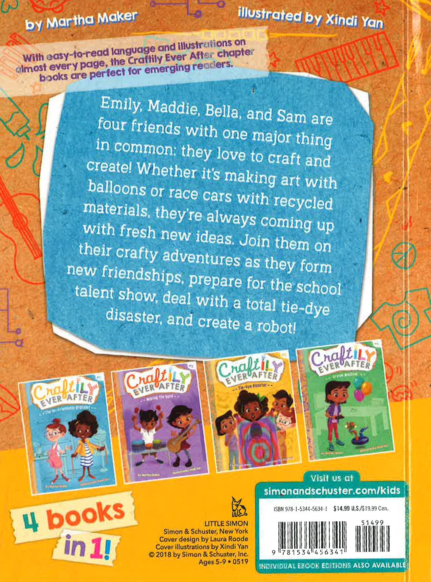 Emily, Maddie, Bella, and Sam are four friends with one major thing in common: they love to craft and create! Whether it’s making art with balloons or racecars with recycled materials, they’re always coming up with fresh new ideas. Join them on their crafty adventures as they form new friendships, prepare for the school talent show, deal with a total tie-dye disaster, and create a robot!
