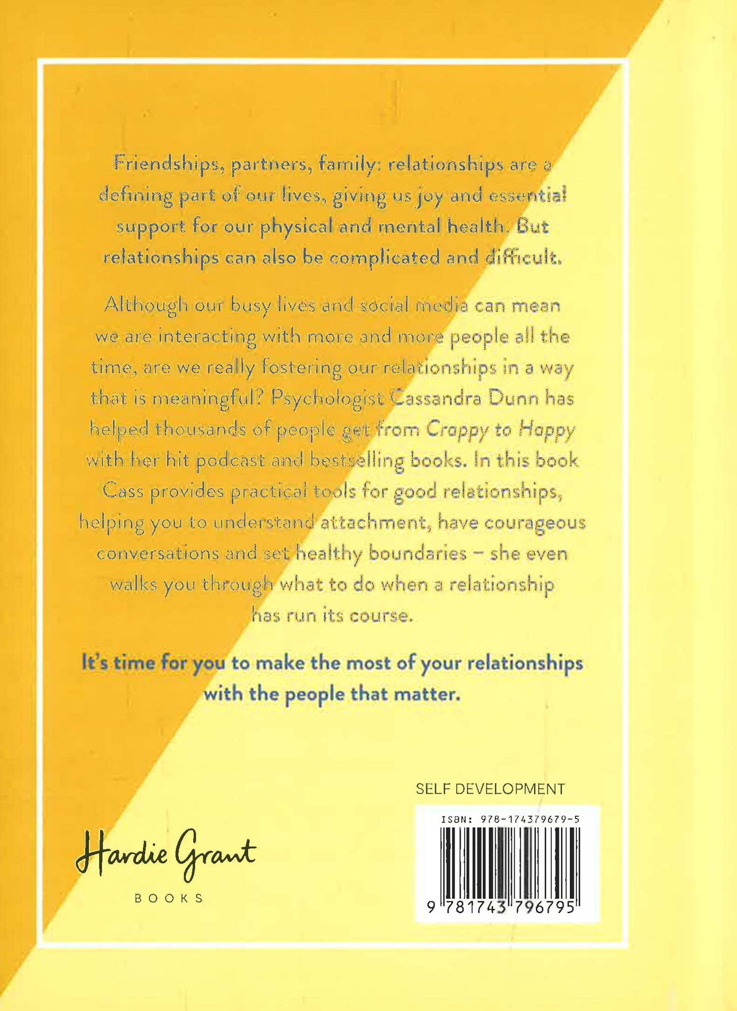 Psychologist Cass Dunn has helped thousands of people get from Crappy to Happy with her hit podcast and bestselling books. In her third book, Crappy to Happy: Love Who You're With, Cass provides practical tools for good relationships, helping you to understand attachment, have courageous conversations, set healthy boundaries and even walks you through what to do when a relationship has run its course.