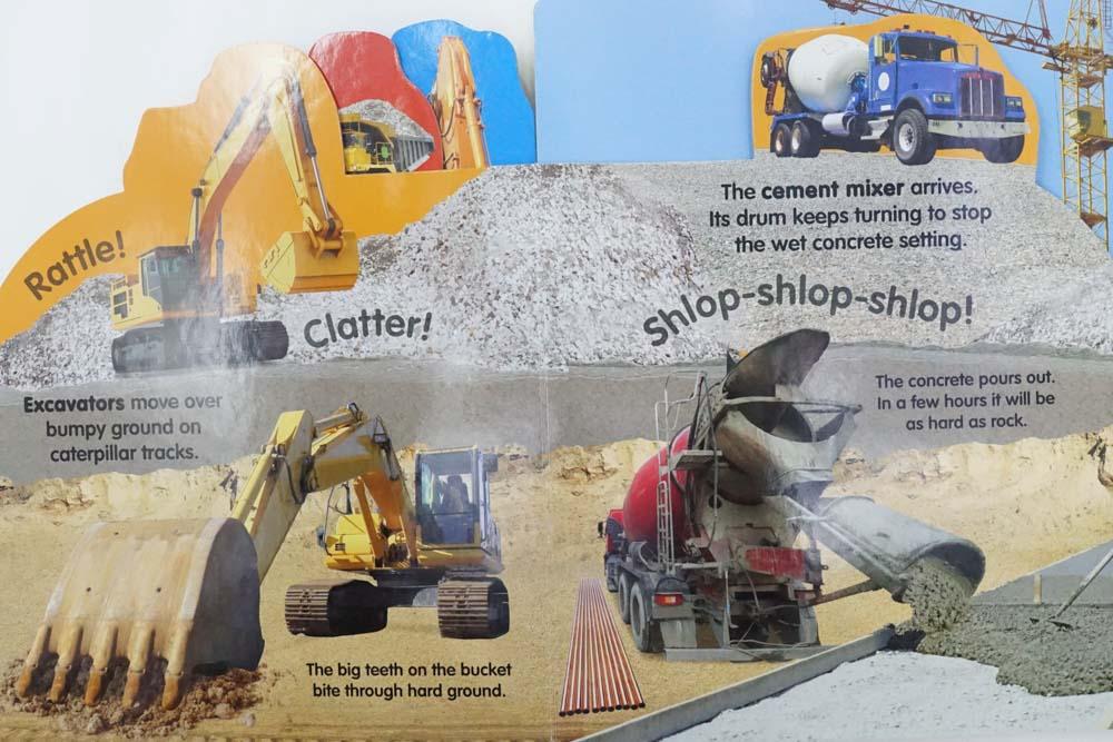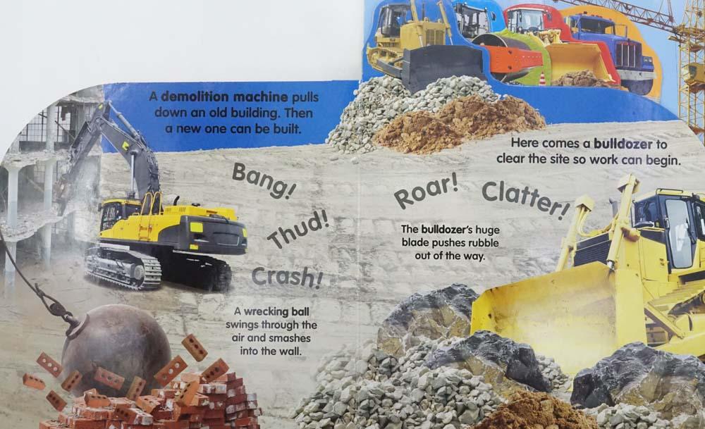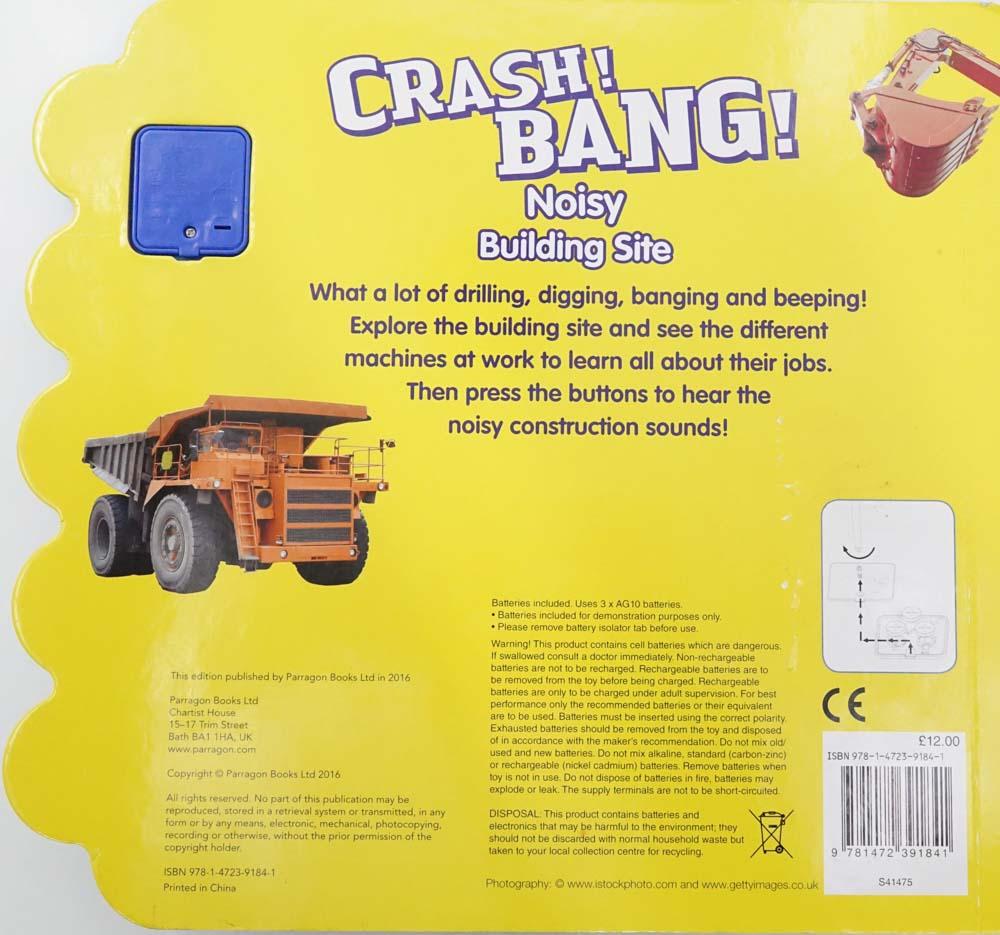 Push any of the ten plastic buttons and experience the sounds of a busy construction site!Crash! Bang! Hammer at the Construction Site is a big, bright board book that is packed full of noisy construction fun!
