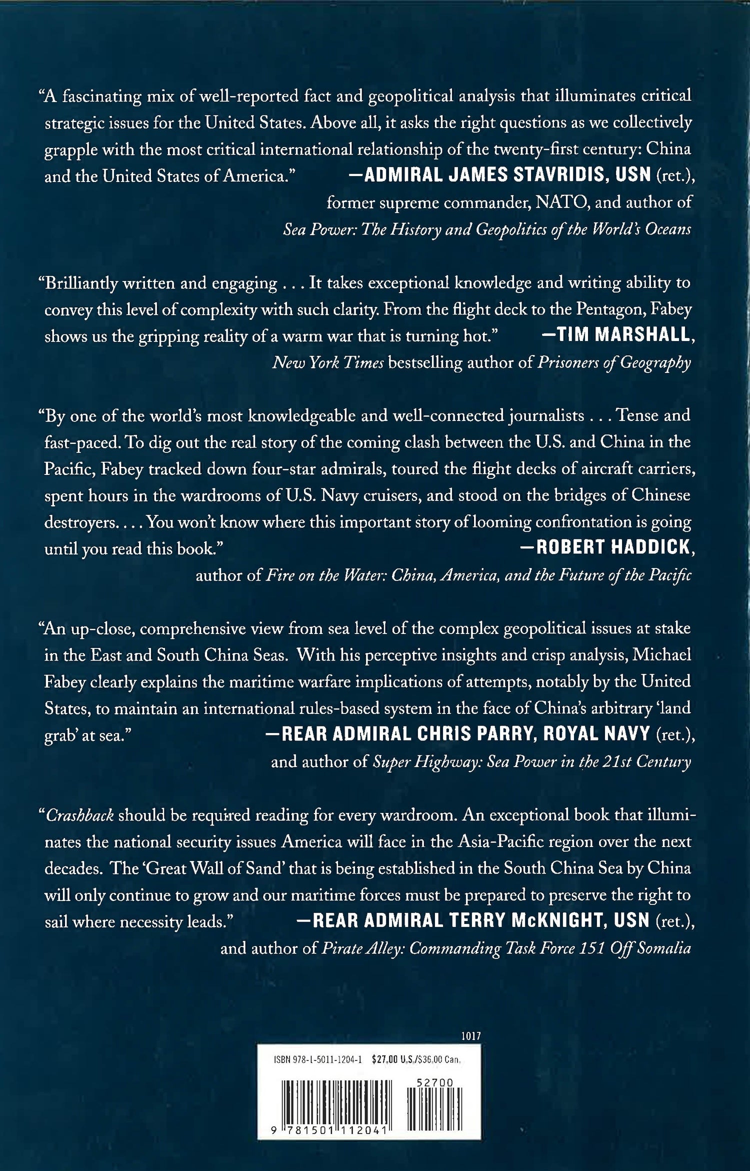 An alarming message from an award-winning journalist with unprecedented access to the highest naval officers in America and China and their ships and weapons, this is a chilling look at the "warm war" over control of the South China Sea--one that is threatening to flare into full-scale conflict. Out in the Pacific Ocean, there is a war taking place. It is a "warm war," a shoving match between the United States, since WWII the uncontested ruler of the seas, and China, which now possesses the world's largest navy. The Chinese regard the Pacific, and especially the South China Sea, as their ocean, and they're ready to defend it. Each day the heat between the two countries increases as the Chinese try to claim the South China Sea for their own, and the United States insists on asserting freedom of navigation. Throughout Southern Asia, countries such as Vietnam, Malaysia, the Philippines, Singapore, and South Korea respond with outrage and growing fear as China turns coral reefs into manmade islands capable of supporting airstrips and then attempts to enforce twelve-mile-radius, shoot-down zones. The immediate danger is that the five trillion dollars in international trade that passes through the area will grind to a standstill. The ultimate danger is that the US and China will be drawn into all-out war. Pulitzer Prize-nominated journalist Michael Fabey has had unprecedented access to the Navy's most exotic aircraft carriers, cruisers, destroyers, aircraft, and submarines, as well as those who command them. He was among the only journalists allowed to board a Chinese war vessel and observe its operations. In Crashback, Fabey describes how every year the US is "losing sea." He predicts the next great struggle between military superpowers will play out in the Pacific, and his book, more than any other, is an accurate preview of how that conflict might unfold.