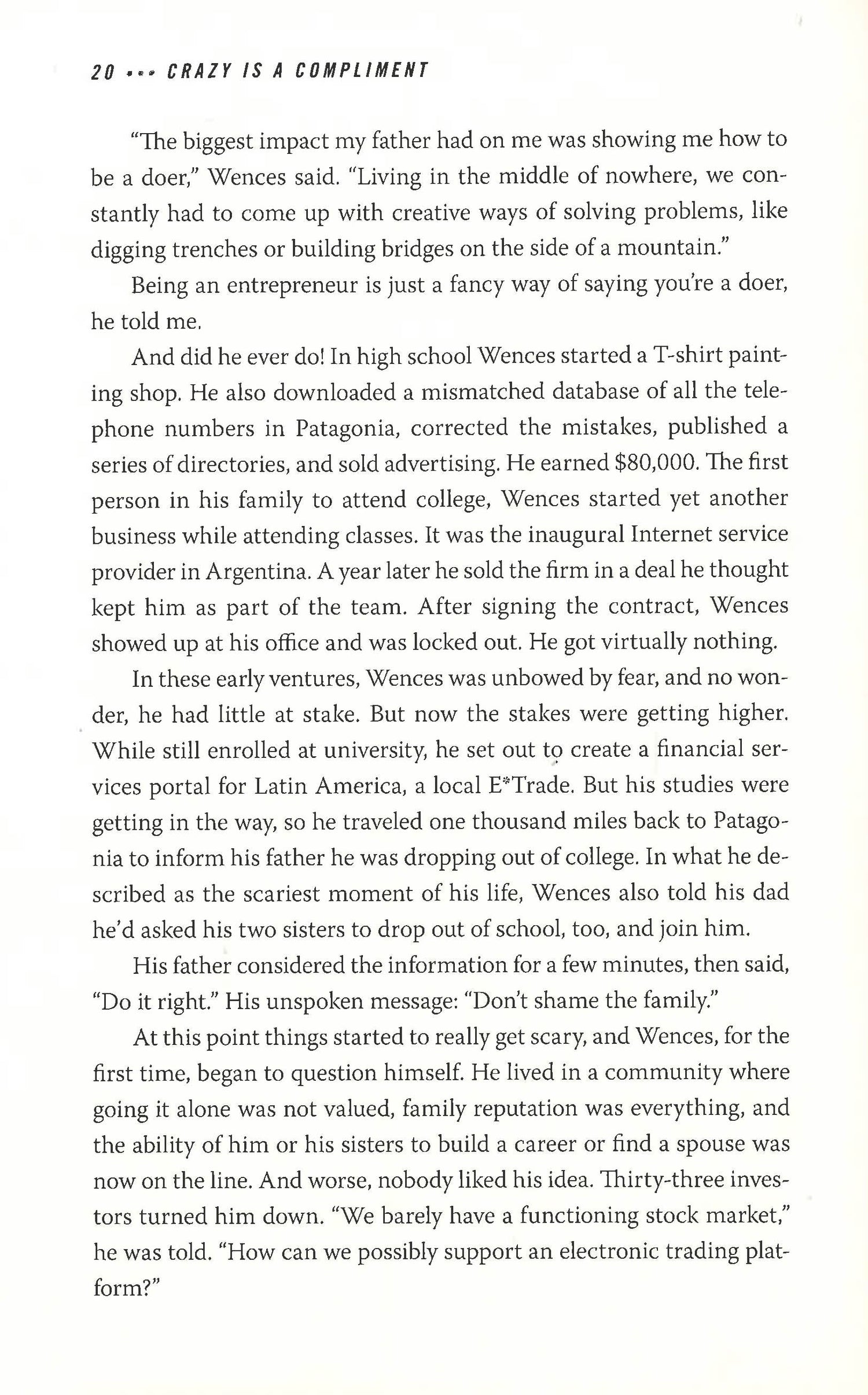 If people aren't calling you crazy, you aren't thinking big enough." These days taking chances isn t just for college dropouts in hoodies. Whether you work at a Fortune 500 company, a nonprofit, or a mom-and-pop, everybody needs to think and act like an entrepreneur. We all need to be nimble, adaptive, daring and maybe even a little crazy or risk being left behind. But how do you take smart risks without risking it all? That s Linda Rottenberg s expertise. As the cofounder and CEO of Endeavor, the world s leading organization dedicated to supporting fast-growing entrepreneurs, she s spent the last two decades helping innovators think bold and execute smart. Now Rottenberg draws on her unrivaled experience to show you the proven techniques to achieve your dreams: from overcoming fear to facing down critics, from stalking supporters to exploiting chaos. "Crazy Is a Compliment "combines inspiring stories, original research, and practical advice to create a road map for getting started and going bigger. Rottenberg brings to life iconic entrepreneurs like Walt Disney and Estee Lauder and reveals how companies like MTV, GE, and Burberry found their best successes by breaking the corporate mold and embracing the entrepreneur mind-set. She also introduces us to some of the one thousand entrepreneurs she s advised, like Leila Velez, who started a hair-care company in her kitchen sink in Rio that now earns $80 million a year. As Linda writes: "Every day I meet people with a dream. Maybe you re serving coffee and fantasizing about launching a microbrewery; maybe you ve skipped college and yearn to start your own design firm; maybe you re sitting in your cubicle and brainstorming a new idea that can improve your company." "You have a dream, but you don t know how to turn your dream into reality. Or you ve already launched your dream but you re unsure how to take it to the next level. This book can show you the way."