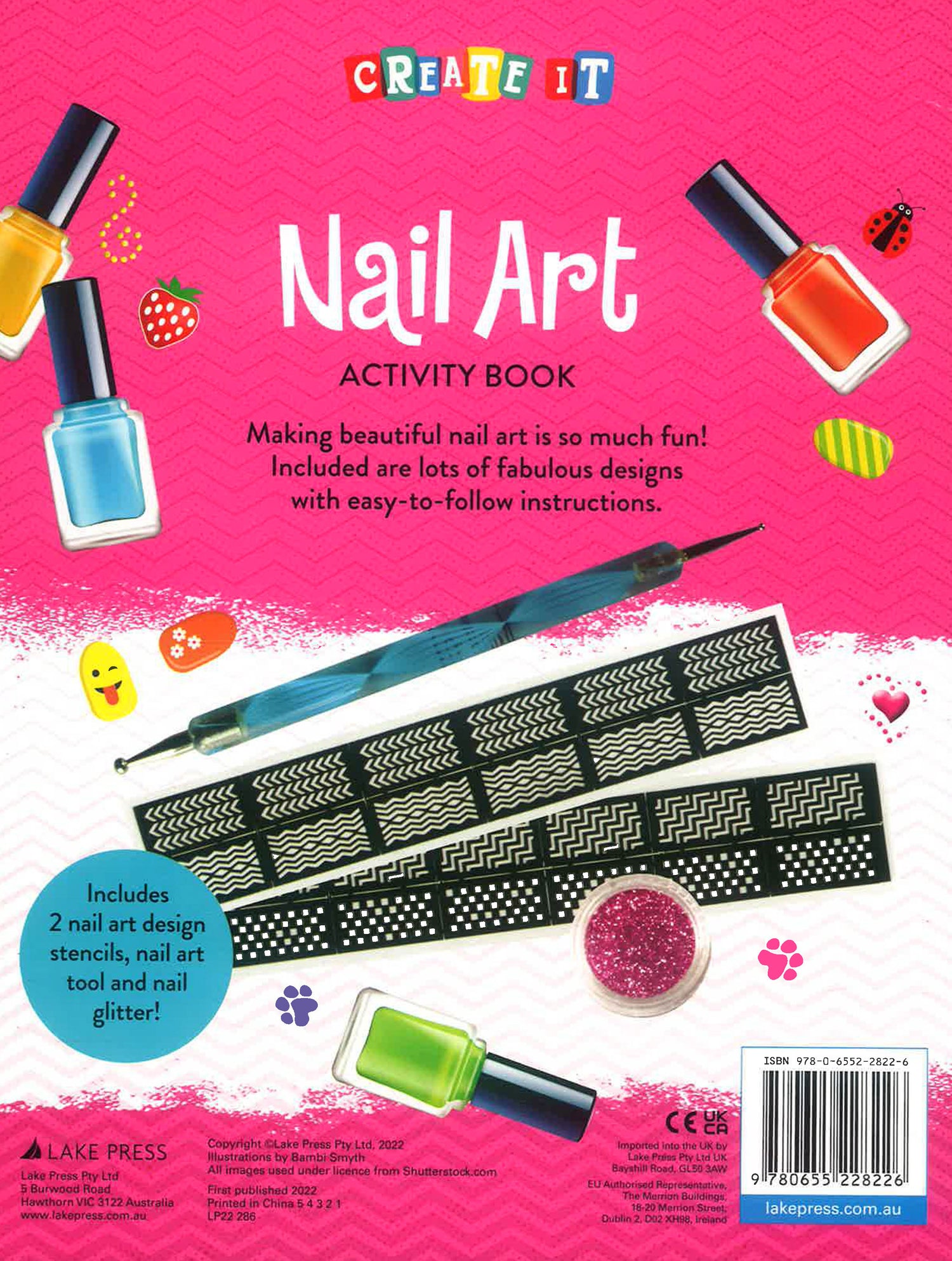 Encourage their creative streak with this fun Nail Art activity book! The book features easy-to-follow instructions and special tools to help kids create wearable art on their nails, including: Precision nail art tool, 2 design stencils, glitter powder. With plenty of ideas and inspiration, there is hours of fun to be had experimenting and creating their own unique nail art designs.