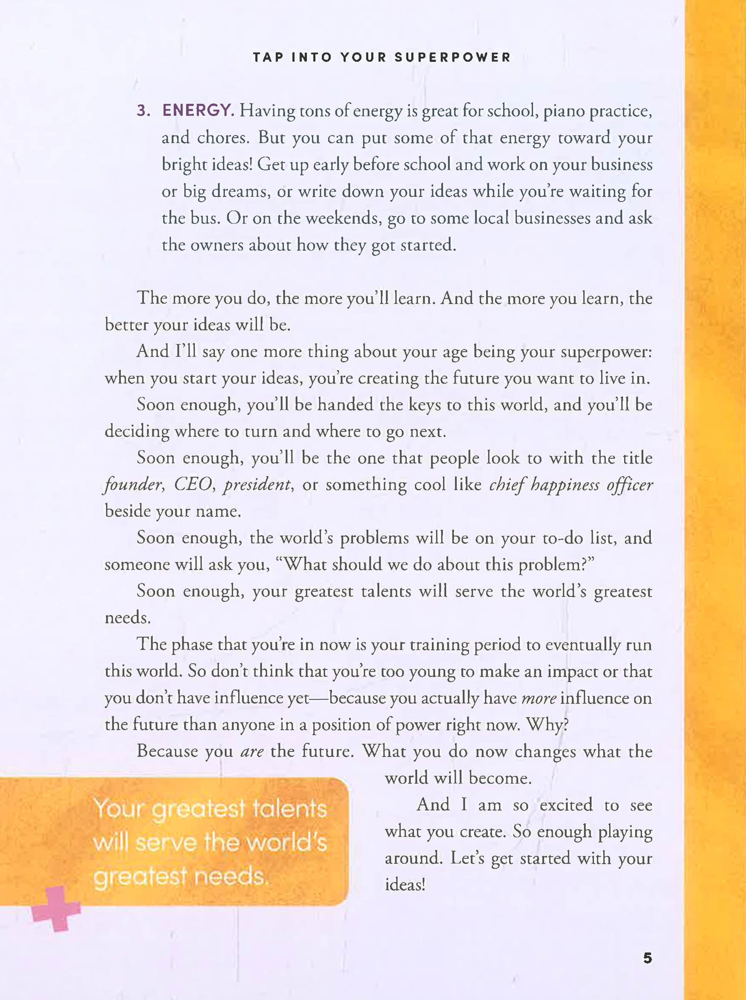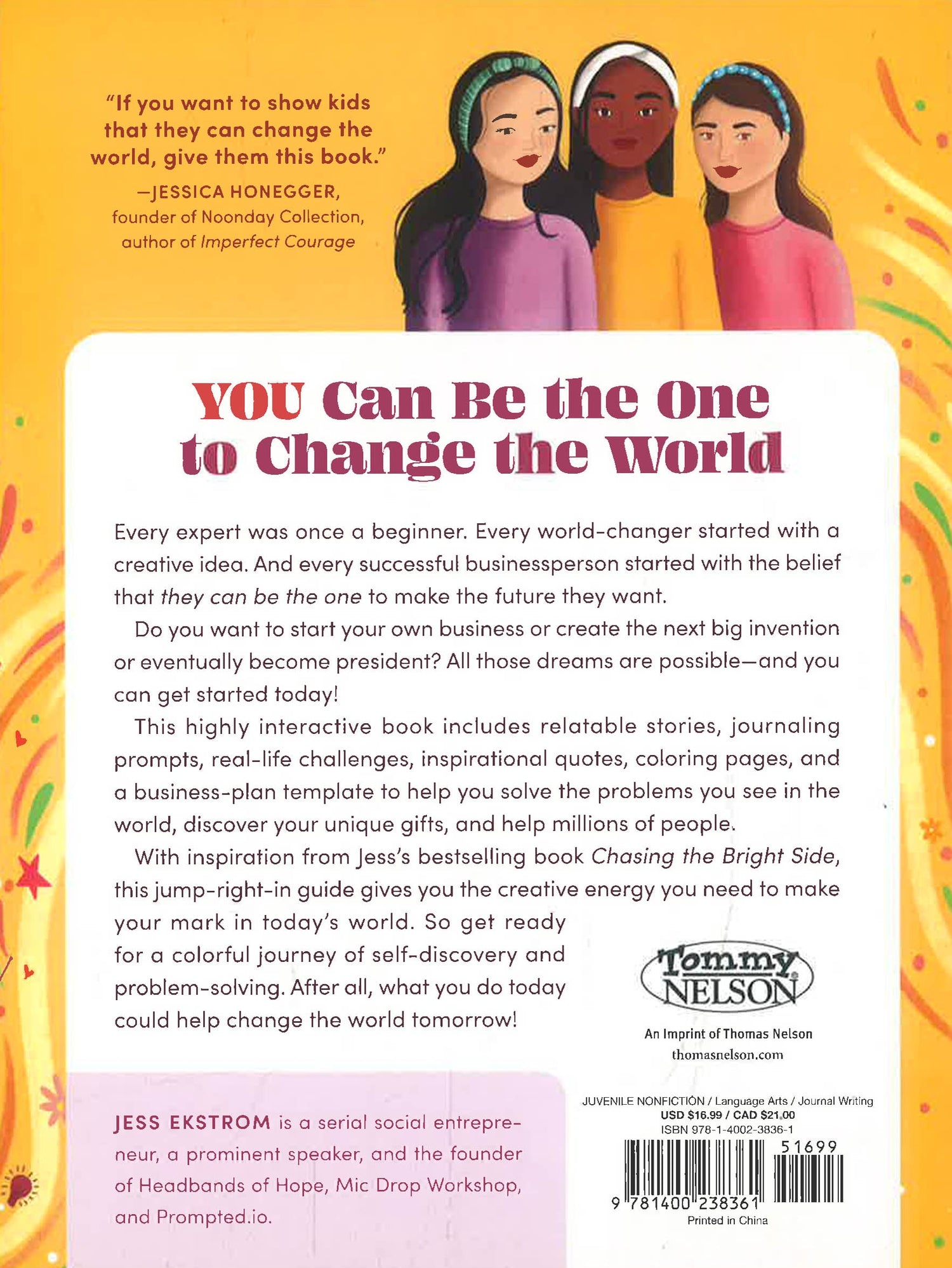 In this interactive book for energetic, creatively minded 8-12-year-olds, innovative thinker and lifelong entrepreneur Jess Ekstrom engages young creators through inspiring stories, journaling prompts, and fun ideas that if they want something to be different in the world, they can do something about it today!