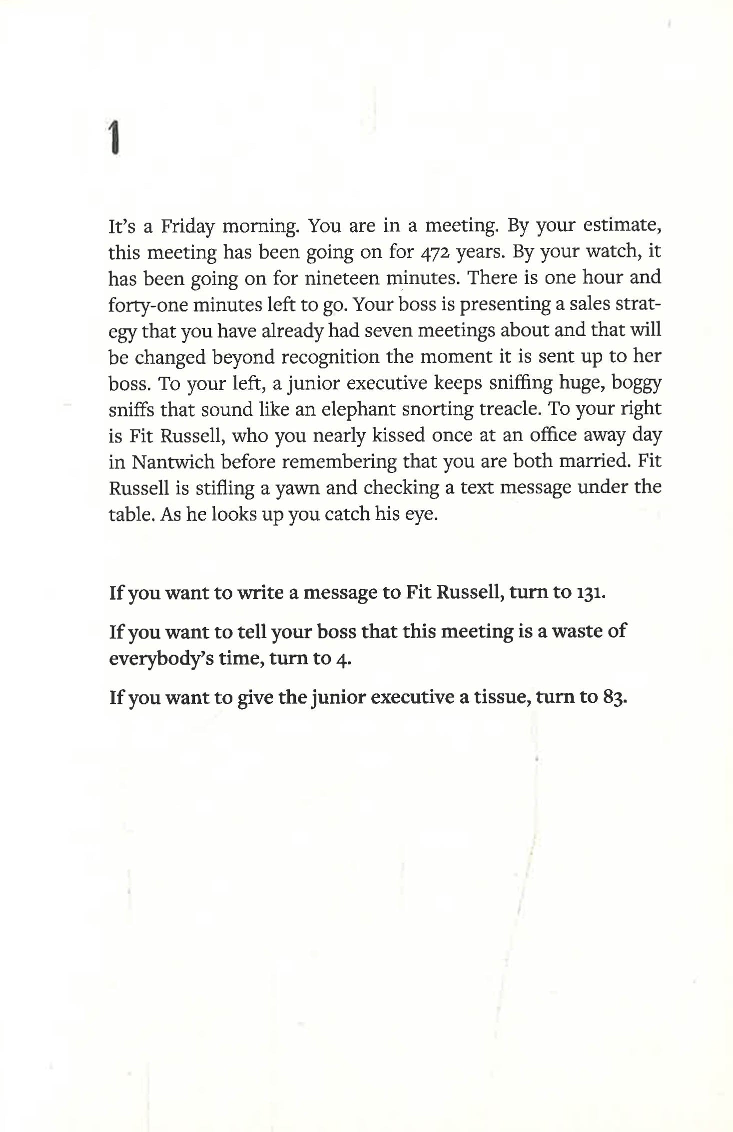 To run away to Brazil, turn to 34. To get a tattoo, turn to 147. To burn your house down, turn to 145. Midway through our lives, we wonder how we ended up here and whether there's a way out. There must have been a crucial turning point, but there's no way to start again in the hope of a better result. Or is there? Here's your chance to try all the roads not taken: polyamory, ayahuasca, younger men, enlightenment, infidelity, Botox, or just telling your boss for once and for all where she can shove her job. But beware: all choices come at a cost... Yelpingly funny, horribly relatable, here are the predicaments of modern midlife, brought together in a compulsively readable book-as-game which - just like real life - you can never truly win.
