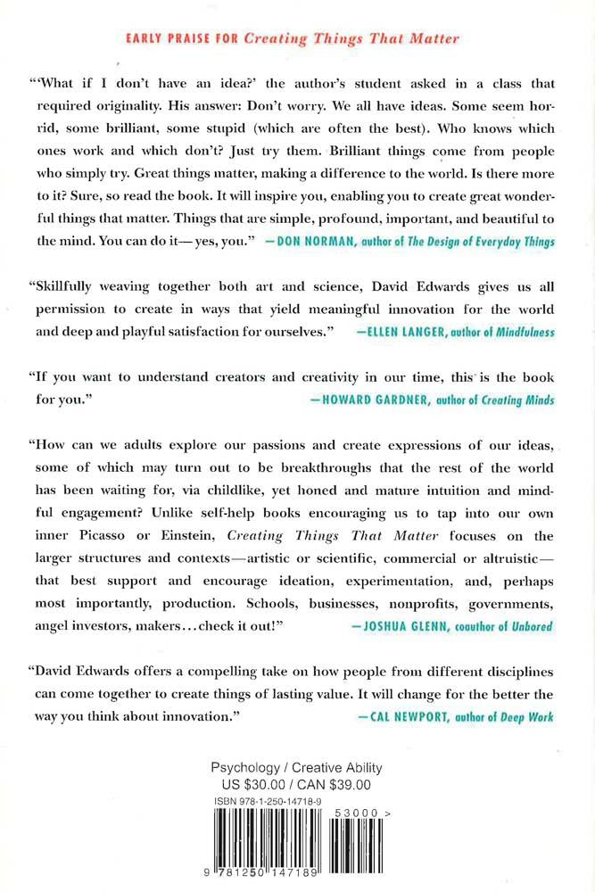 Most things we create will not matter. This book is about creating things that do, from a master innovator who brings science and art together in his cutting edge labs. Art and science are famous opposites. Contemporary innovation mostly keeps them far apart. But in this book, David Edwards--world-renowned inventor; Harvard professor of the practice of idea translation; creator of breathable insulin, edible food packaging, and digital scents--reveals that the secret to creating very new things of lasting benefit, including innovations we will need to sustain human life on the planet, lies in perceiving art and science as one. Here Edwards shares how he discovered a way of creating that transcends disciplines and incorporates the principles of aesthetics. He introduces us to cutting-edge artists, musicians, architects, physicists, mathematicians, engineers, chefs, choreographers, and novelists (among others) and uncovers a three-step cycle they all share in creating things that durably matter. This creator cycle looks unlike what we associate with game-changing innovation today, and aligns the most expressive art and the most revolutionary science in a radical reimagining of how we live. David Edwards and the innovators he profiles belong to an emerging grassroots renaissance flourishing in special environments that we all can make in our schools, companies and homes. Creating Things That Matter is a book for anyone wondering what tomorrow might be, and at last half believing that what they do can make a difference.