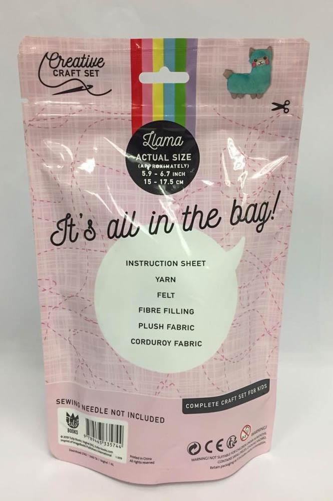 Llama Actual size: (Approximatley) 5.9 - 6.7 inch, 15 - 17.5 cm. Its's all in the bag! Instruction sheet: -Yarn -Felt -Fibre Filling -Plush Fabric -Corduroy Fabric. Not suitable for children under 36 months.