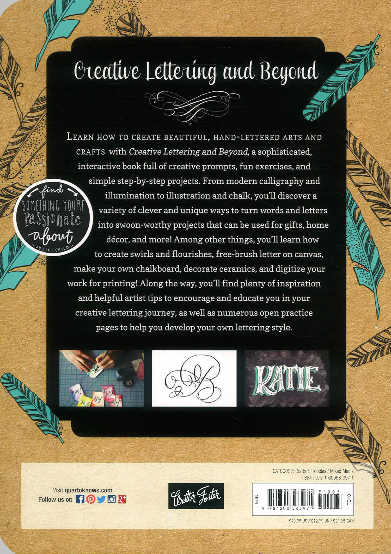 Creative Lettering and Beyond combines the artistic talents and inspirational tips and tutorials of several professional hand letterers and calligraphers for a dynamic and interactive learning experience. After a brief introduction to the various tools and materials, artists and lettering enthusiasts will learn how to master the art of hand lettering and typography through engaging, easy-to-follow step-by-step projects, prompts, and exercises. From the basic shape and form of letters, to cursive script, spacing, and alignment, artists will discover how to transform simple words, phrases, and quotes into beautiful works of hand-lettered art. The interactive format and step-by-step process offers inspirational instruction for a wide variety of fun projects and gift ideas, including hand-rendered phrases on paper and digitally enhanced notecards. Artists will also discover how to apply lettering to linen, coffee mugs, calendars, and more. Numerous practice pages and interactive prompts throughout the book invite readers to put their newfound lettering skills to use, as well as work out their artistic ideas. Covering a variety of styles and types of lettered art, including calligraphy, illustration, chalk lettering, and more, artists will find a plethora of exercises and tips to help them develop their own unique lettering style. With comprehensive instructions and fun, inspirational exercises and projects, Creative Lettering and Beyond is a must-have resource for anyone who wants to learn this beautiful and stylish art form.