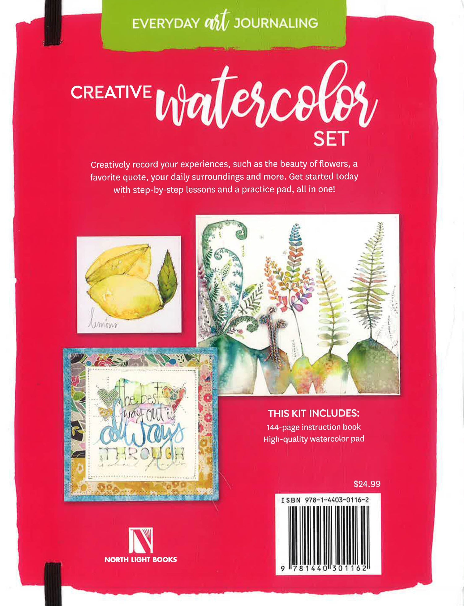 Set includes a 144-page book of instructon and inspiration and one 24-sheet pad of high-quality watecolor paper.