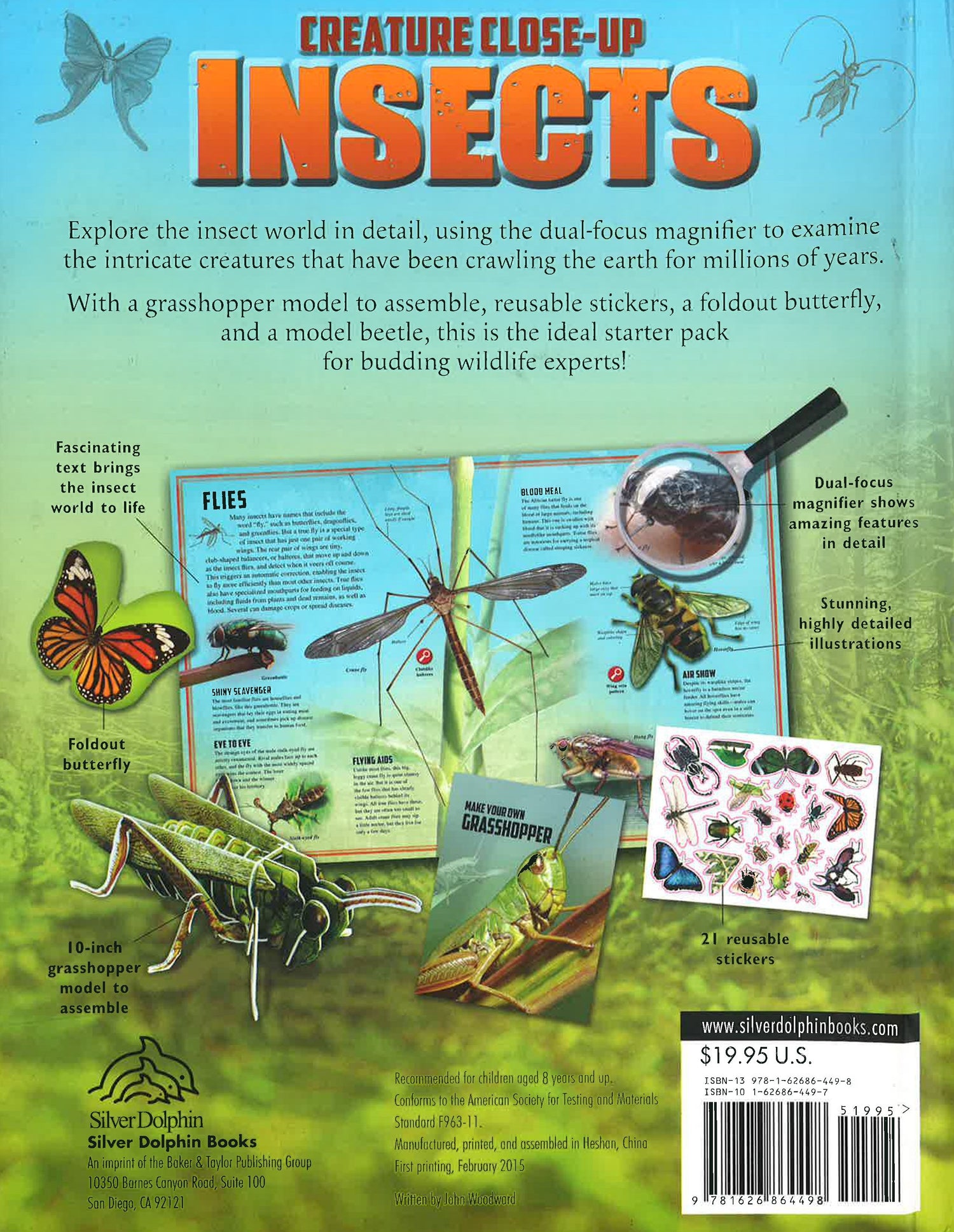 Explore the insect world in detail, using the dual-focus magnifier to examine the intricate creatures that have been crawling the earth for millions of years.With a grasshopper model to assemble, reusable stickers, a foldout butterfly, and a model beetle, this is the ideal starter pack for budding wildlife experts!
