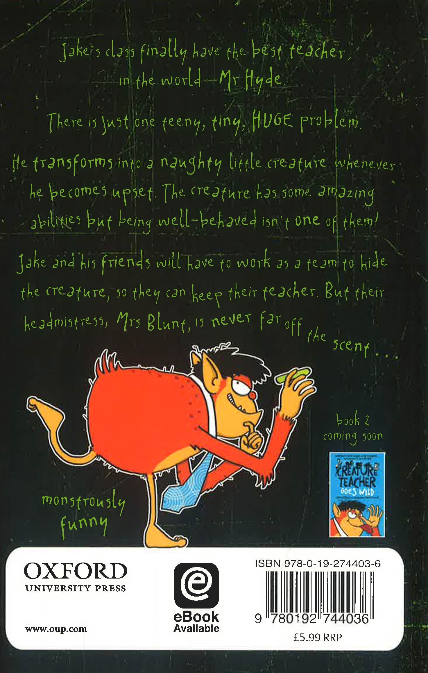 Is your teacher a monster? You’re not alone. Meet Mr Hyde. Mostly great. But a bit WILD. School is never boring for the kids in Mr Hyde’s class. He’s the best teacher ever. His lessons are always fun. Plus, he never makes them clean toilets with a toothbrush. There’s just one teensy problem. If he gets cross – uh-oh. The kids don’t mind him turning into a hairy monster. (It’s cool in a totally insane and messy way.) But Mrs Blunt, the nosy headmistress, will fire him if she sees him. How do you hide a monster teacher on the rampage? (If yours is a monster too, perhaps you already know.)