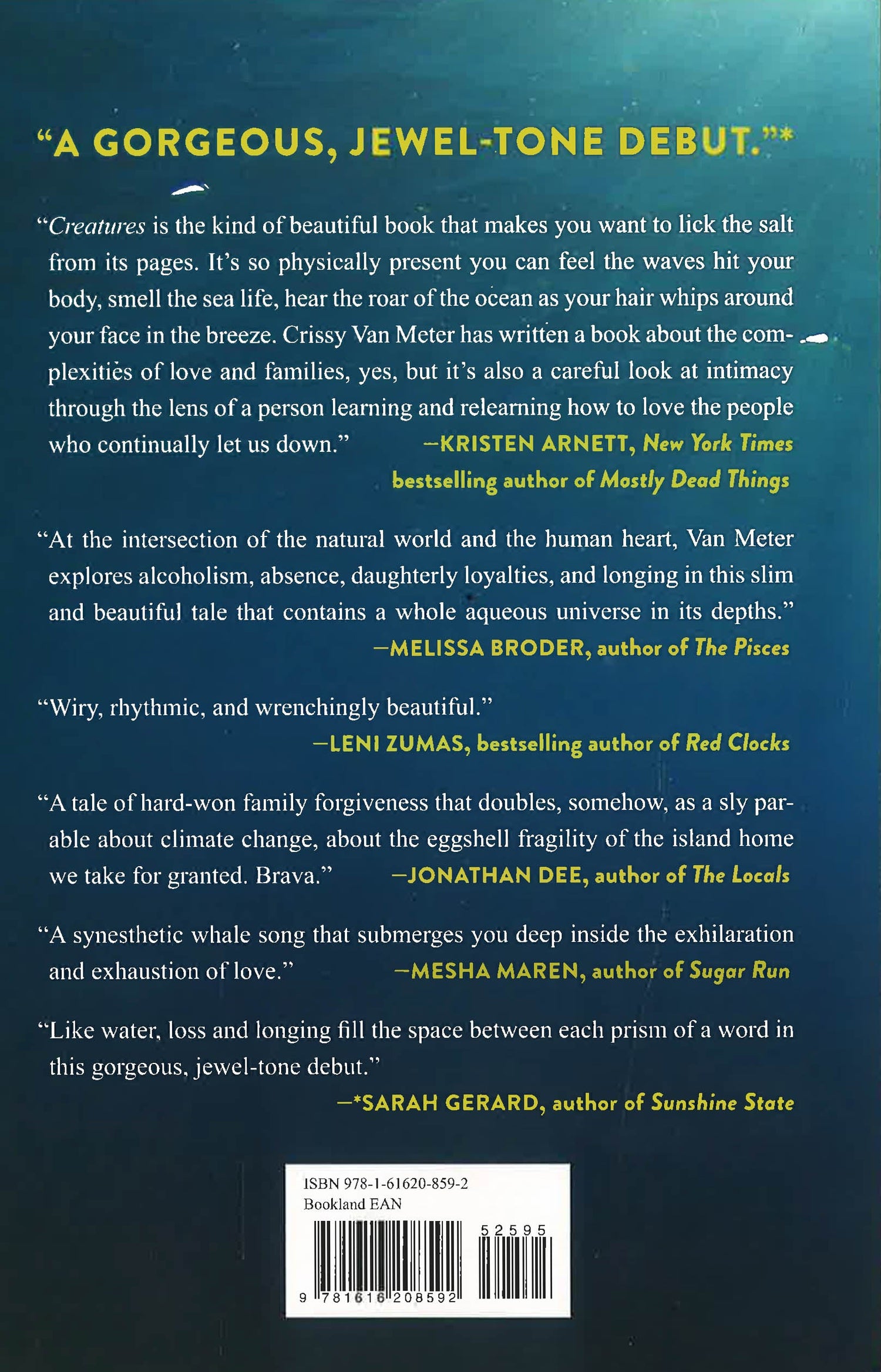A Belletrist Book Club Selection "Van Meter's debut is an unwavering triumph . . . A coming-of-age that's as human as it is wild." --The New York Times Book Review On the eve of Evangeline's wedding, on the shore of Winter Island, a dead whale is trapped in the harbor, the groom may be lost at sea, and Evie's mostly absent mother has shown up out of the blue. From there, in this mesmerizing, provocative debut, the narrative flows back and forth through time as Evie reckons with her complicated upbringing in this lush, wild land off the coast of Southern California. Evie grew up with her well-meaning but negligent father, surviving on the money he made dealing the island's world-famous strain of weed, Winter Wonderland. Although her father raised her with a deep respect for the elements, the sea, and the creatures living within it, he also left her to parent herself. With wit, love, and bracing flashes of anger, Creatures probes the complexities of love and abandonment, guilt and forgiveness, betrayal and grief--and the ways in which our childhoods can threaten our ability to love if we are not brave enough to conquer the past. Lyrical, darkly funny, and ultimately cathartic, Creatures exerts a pull as strong as the tides.