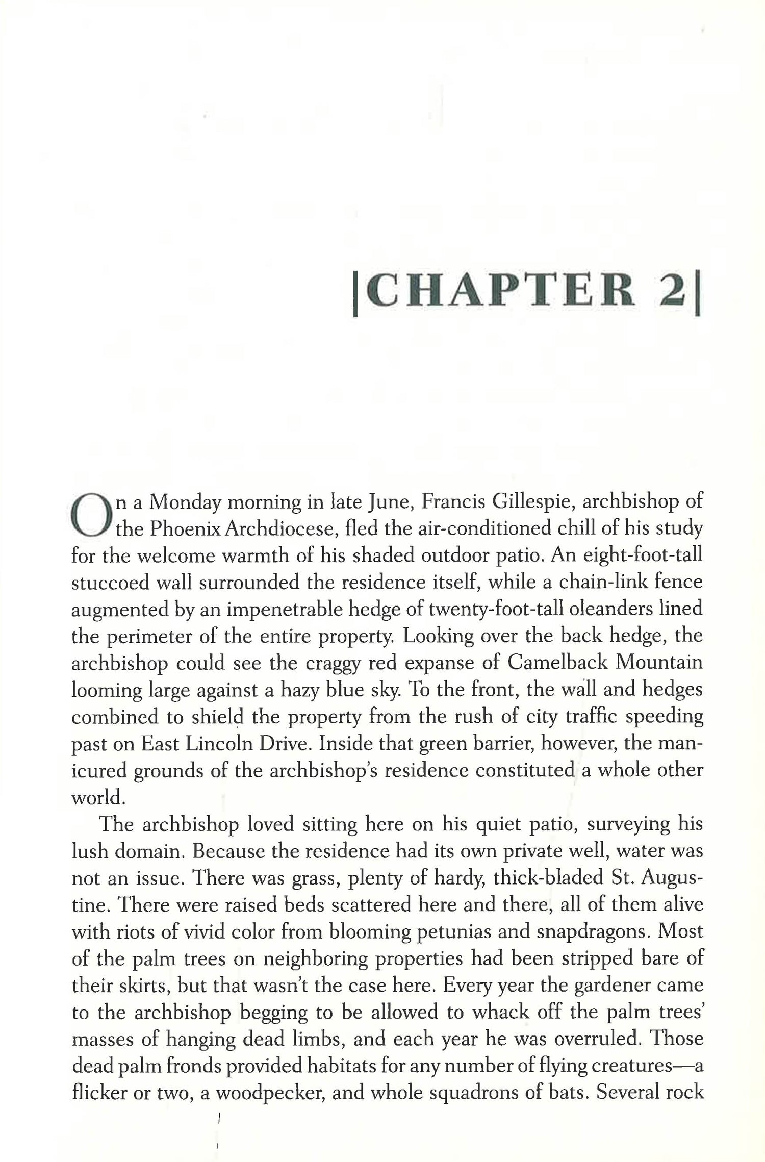 With B. out of the country on a cybersecurity emergency, it’s up to Ali to track down the source of the threats. When a shooter assassinates the archbishop’s driver and leaves the priest himself severely injured, Ali forms an uneasy alliance with a Phoenix homicide cop in hopes of preventing another attack. But Ali doesn’t realize that the killer has become not only more unhinged but also more determined to take out his or her target.