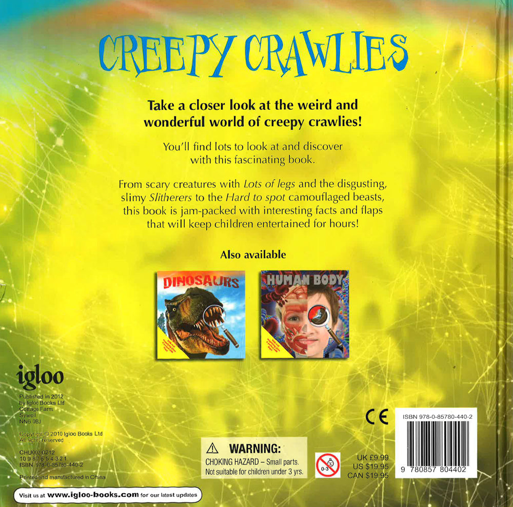 Take a closer look at the weird and wonderful world of creepy crawlies! You'll find lots to look at and discover with this fascinating book. From scary creatures with lots of legs and the disgusting slimy slitherers to the hard to seek camoflaged beasts, this book is jam-packed with interesting facts and flaps, that will keep children entertained for hours!