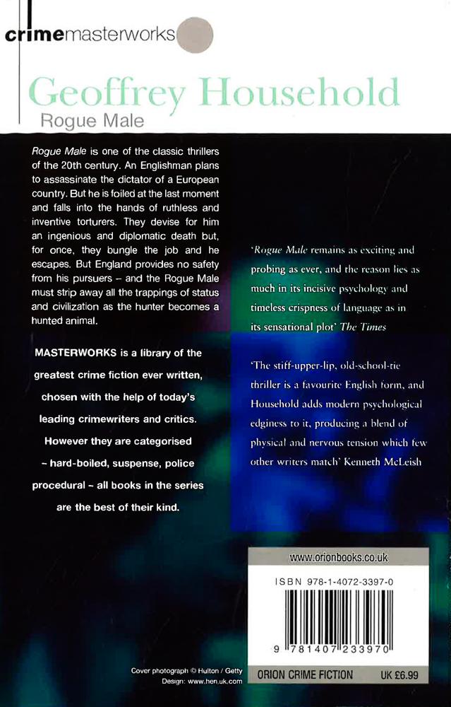 Geoffrey Household’s most famous novel is a period piece that exerts such a powerful grip on the contemporary reader it may well be the best crime thriller to be published in 2014. Rogue Male was reissued this summer to mark the book’s 75th anniversary. Twelve years earlier, this unrelenting story about an English aristocrat being pursued by resourceful foreign agents was published as part of the Crime Masterworks series alongside Dashiell Hammet, Arthur Conan Doyle and Jim Thompson. Its classic status was affirmed last year by the publication of a handsome Folio Society edition.