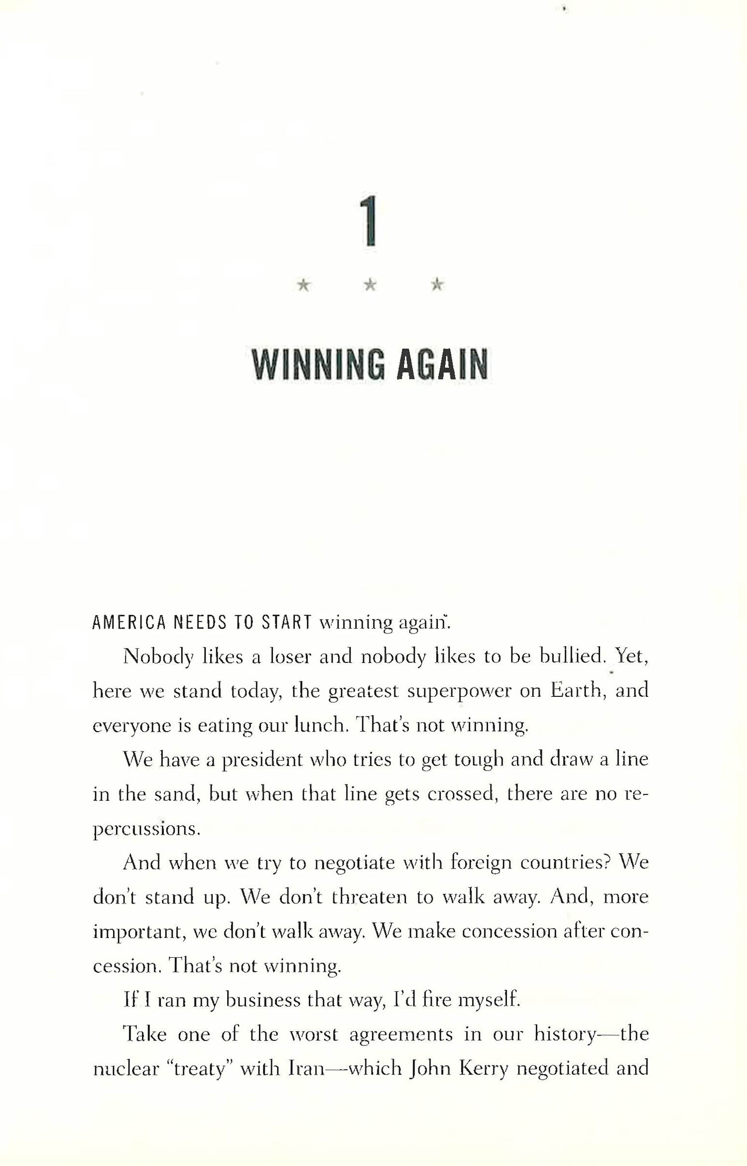 Look at the state of the world right now. It’s a terrible mess, and that’s putting it mildly. There has never been a more dangerous time. The politicians and special interests in Washington, DC, are directly responsible for the mess we are in. So why should we continue listening to them?It’s time to bring America back to its rightful owners—the American people.I’m not going to play the same game politicians have been playing for decades—all talk, no action, while special interests and lobbyists dictate our laws. I am shaking up the establishment on both sides of the political aisle because I can’t be bought. I want to bring America back, to make it great and prosperous again, and to be sure we are respected by our allies and feared by our adversaries.