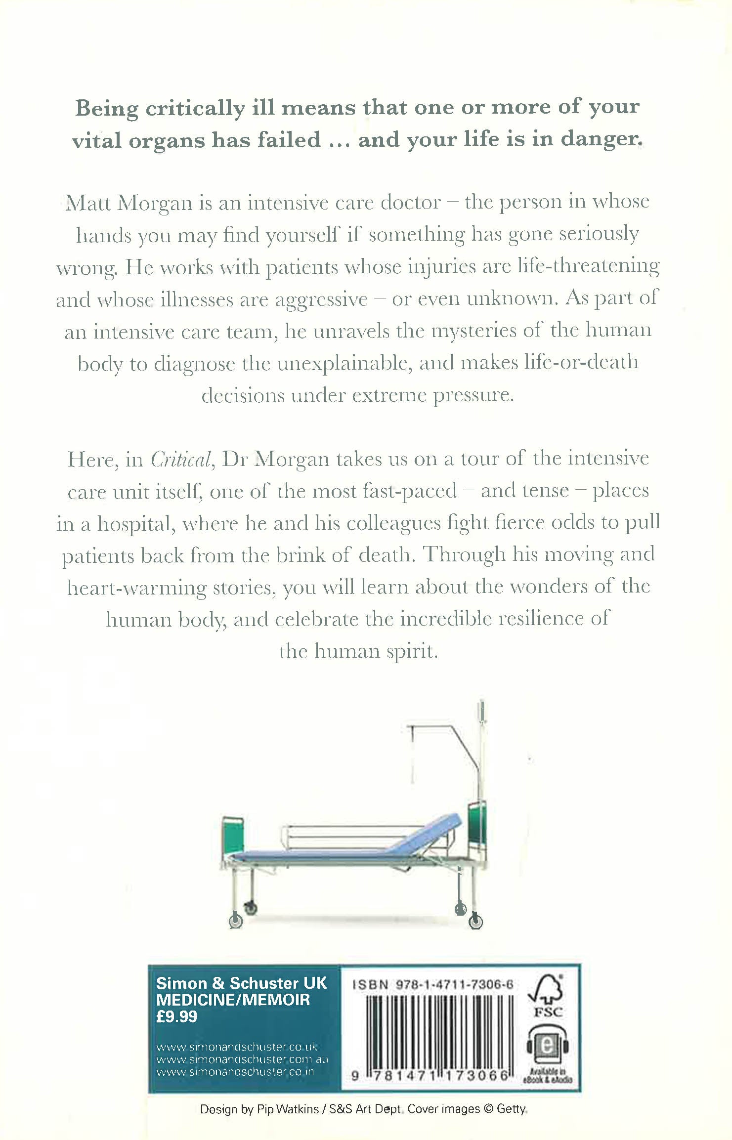 Movingly and compassionately, Matt writes about the cases and the people that have stayed with him, both the recoveries and the losses. This book shows the fragility of life, but also the incredible resilience of the human body and spirit.