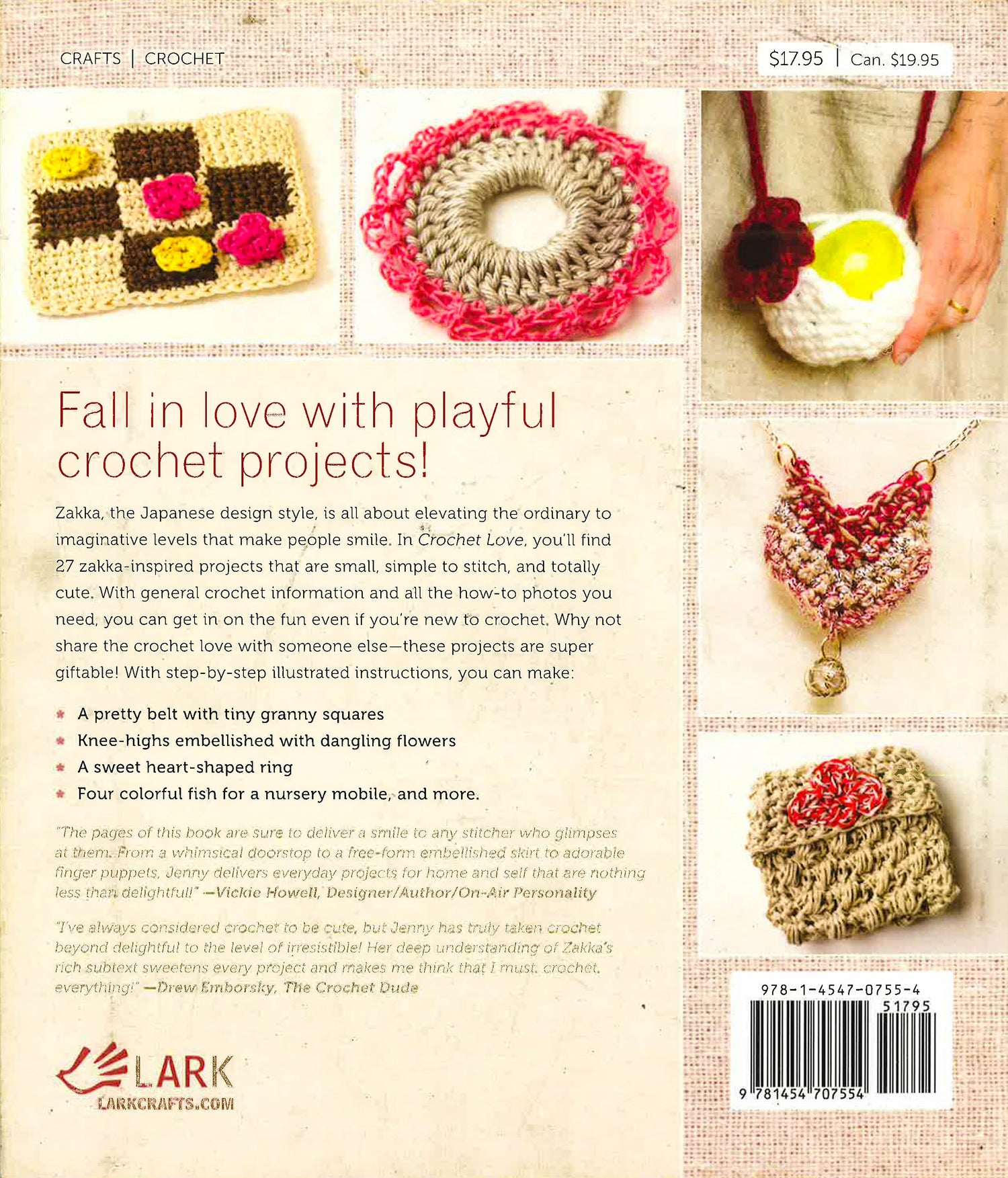 Simple, elegant, and accessible, Japanese zakka—“crafts for the home”—is a hot new trend. Jenny Doh brings this colorful and super-cute aesthetic to the world of crochet. Twenty-seven small, beginner-friendly projects include a fun fish mobile, cozy seat cushion, jewelry, bags, and more. A basics section provides all the information you need to get in on the fun!