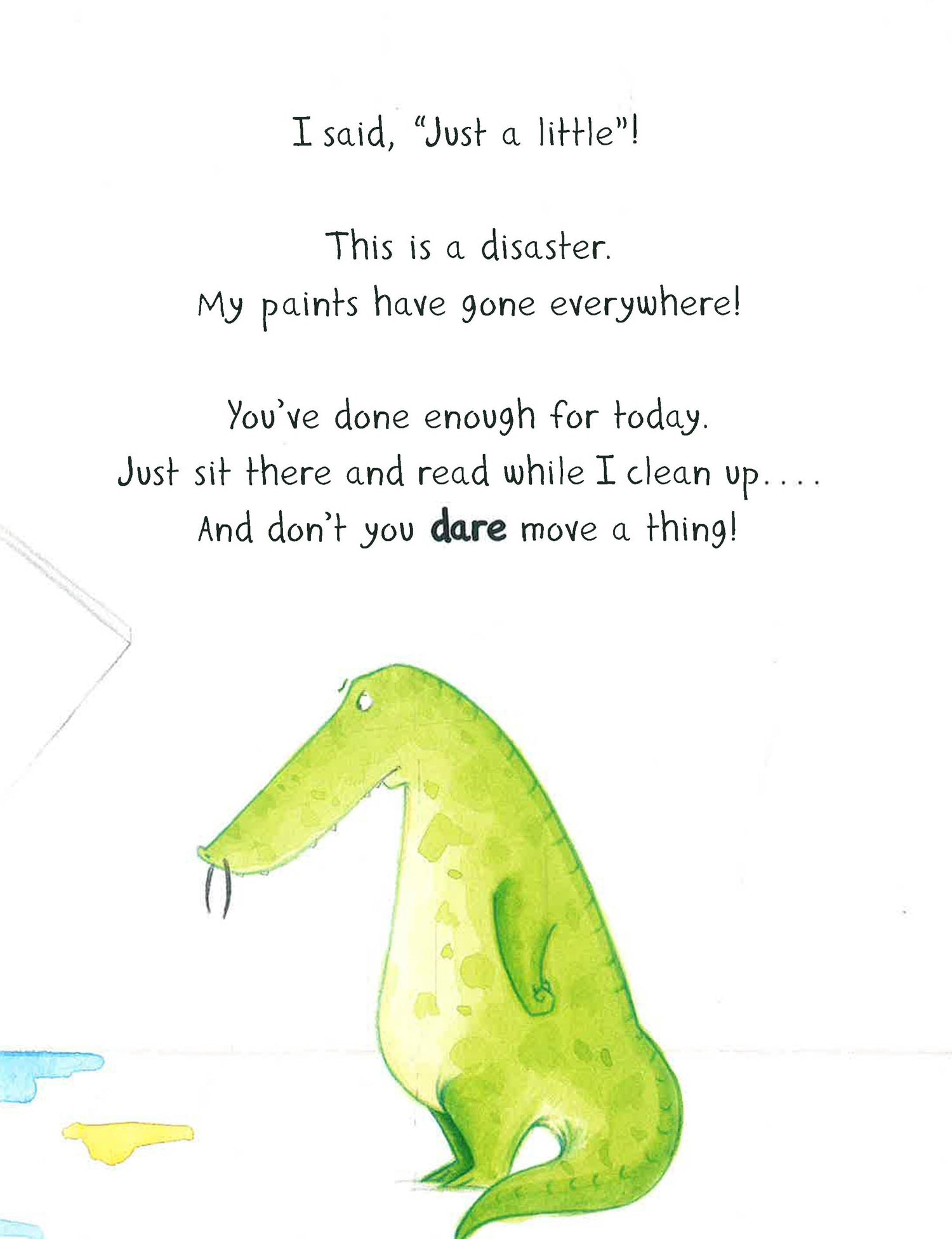 In this interactive picture book, children can follow Crocodali the painter's instructions to help him create a masterpiece that will spark children's curiosity! Crocodali tells readers to tilt the book to straighten the canvas, shake the book to spread the paint, blow on the book (but not too hard!) to help the painting dry, and much more. As they help Crocodali paint his masterpiece, children will be able to express their creative sides and learn to appreciate art.