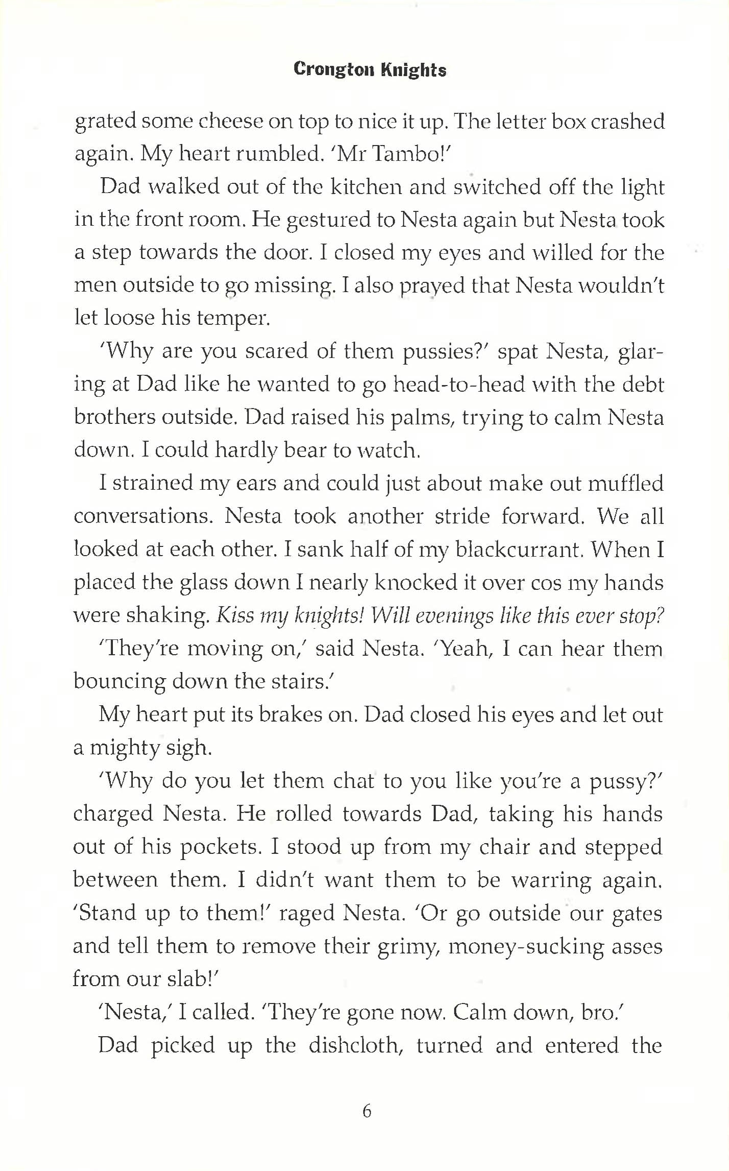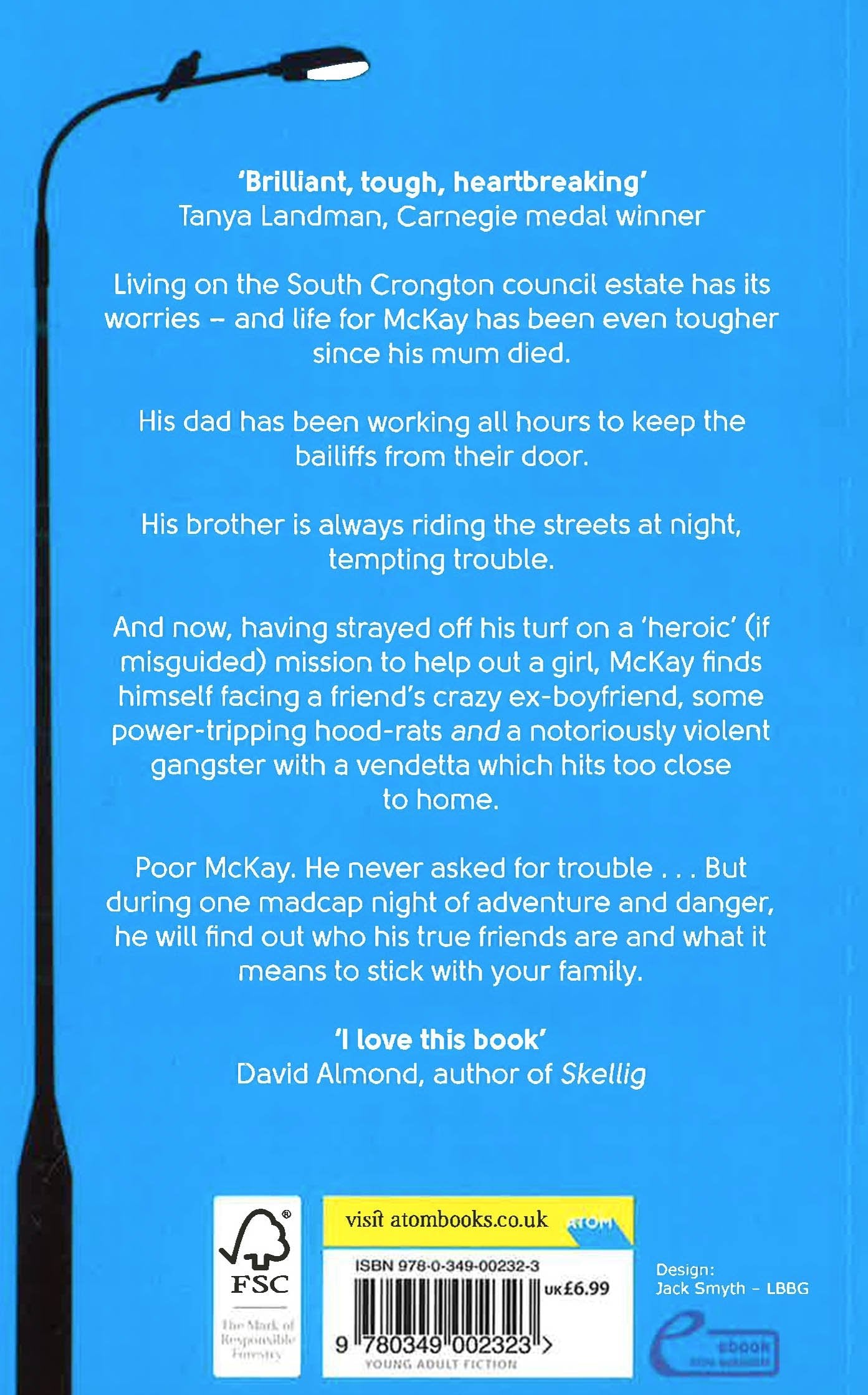 Living on the South Crongton council estate has its worries - and life for McKay has been even tougher since his mum died. His dad has been working all hours to keep the bailiffs from their door. His brother is always out riding the streets at night, tempting trouble. And now, having strayed off his turf on a 'heroic' (if misguided) mission to help out a girl, McKay finds himself facing a friend's crazy ex-boyfriend, some power-tripping hood-rats and a notoriously violent gangster with a vendetta which hits too close to home.Poor McKay. He never asked for trouble . . . But during one madcap night of adventure and danger, he will find out who his true friends are and what it means to stick with your family. Crongton Knights is a very funny, very moving story that shows that although life is testing, the lessons learned the hard way are the ones you'll never forget.