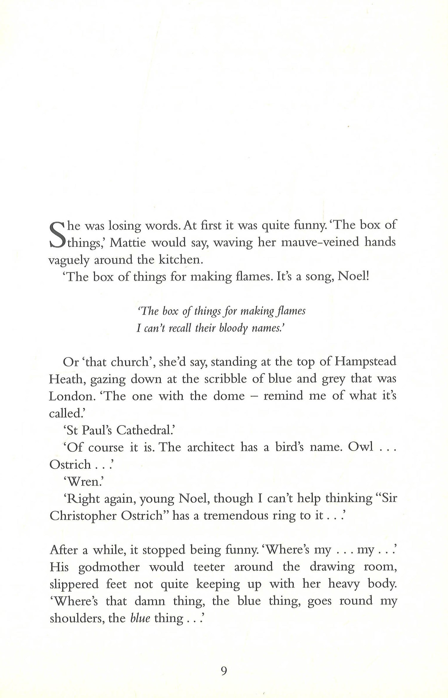 Paper Moon meets the Blitz in this original black comedy, set in World War II England, chronicling an unlikely alliance between a small time con artist and a young orphan evacuee.When Noel Bostock - aged ten, no family - is evacuated from London to escape the Nazi bombardment, he lands in a suburb northwest of the city with Vera Sedge - a thirty-six-year old widow drowning in debts and dependents. Always desperate for money, she’s unscrupulous about how she gets it.Noel’s mourning his godmother Mattie, a former suffragette. Wise beyond his years, raised with a disdain for authority and an eclectic attitude toward education, he has little in common with other children and even less with the impulsive Vee, who hurtles from one self-made crisis to the next. The war’s provided unprecedented opportunities for making money, but what Vee needs - and what she’s never had - is a cool head and the ability to make a plan.On her own, she’s a disaster. With Noel, she’s a team.Together, they cook up a scheme. Crisscrossing the bombed suburbs of London, Vee starts to make a profit and Noel begins to regain his interest in life. But there are plenty of other people making money out of the war - and some of them are dangerous. Noel may have been moved to safety, but he isn’t actually safe at all. . . .