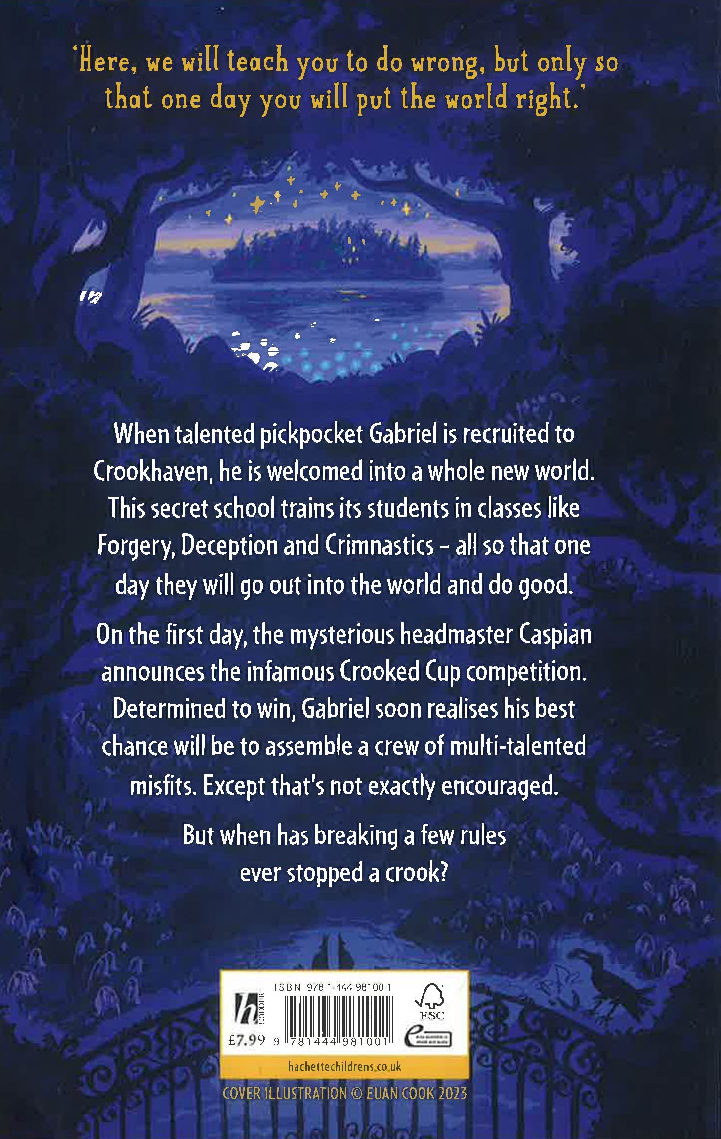 But instead of being arrested, he is invited by the mysterious Caspian Crook to attend Crookhaven - a school for thieves. At Crookhaven, students are trained in lock-picking, forgery and 'crim-nastics', all with the intention of doing good out in the world, by conning the bad and giving back to the innocent.