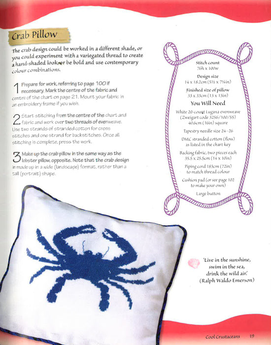 You will almost be able to feel the sand between your toes with the evocative designs presented in Cross Stitch by the Sea. Over 35 inspirational pieces for cross stich capture a wide assortment of seaside memories, including sea life, sand castles, tropical island getaways and more. Project ideas for using the designs range from framed pictures, beach bags and pillows to smaller quick-to-stitch coasters and cards. Simple stitching advice and clear instructions accompany each project along with clear, full-color charts and stunning photography for each cross stitch design.