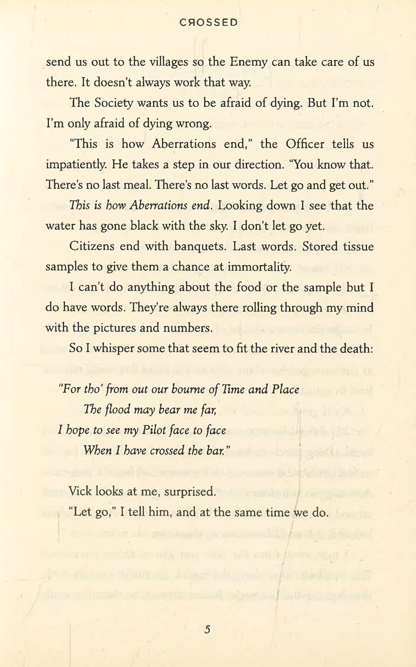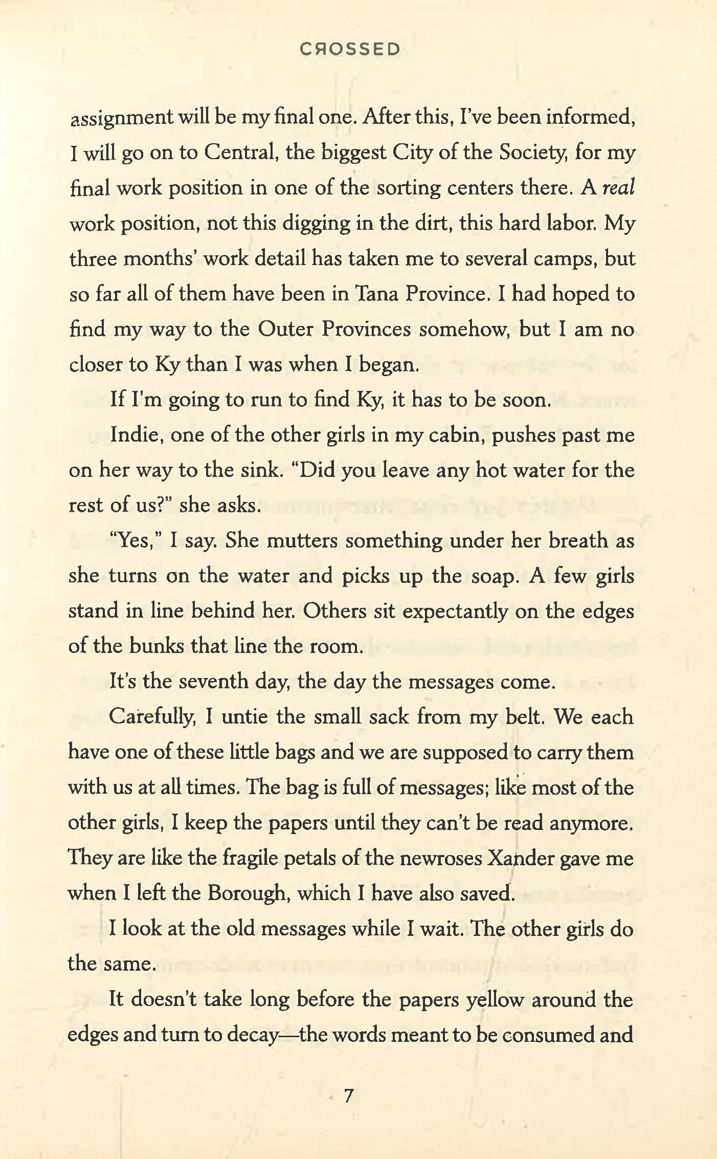 Rules are different outside Society. Chasing down an uncertain future, Cassia makes her way to Outer Provinces in pursuit of Ky - taken by the Society to his certain death - only to find that he has escaped into the majestic, but treacherous, canyons. On this wild frontier are glimmers of a different life and the enthralling promise of rebellion.Rules are different outside the Society. Chasing down an uncertain future, Cassia makes her way to the Outer Provinces in pursuit of Ky - taken by the Society to his certain death - only to find that he has escaped into the majestic, but treacherous, canyons. On this wild frontier are glimmers of a different life and the enthralling promise of rebellion. But even as Cassia sacrifices everything to reunite with Ky, ingenious surprises from Xander may change the game once again. Narrated from both Cassia's and Ky's points of view, this hotly anticipated sequel to Matched will take them both to the edge of Society, where nothing is as expected and crosses and double-crosses make their path more twisted than ever . . .The sensational second book in the series and follow-up to acclaimed international bestseller, Matched.