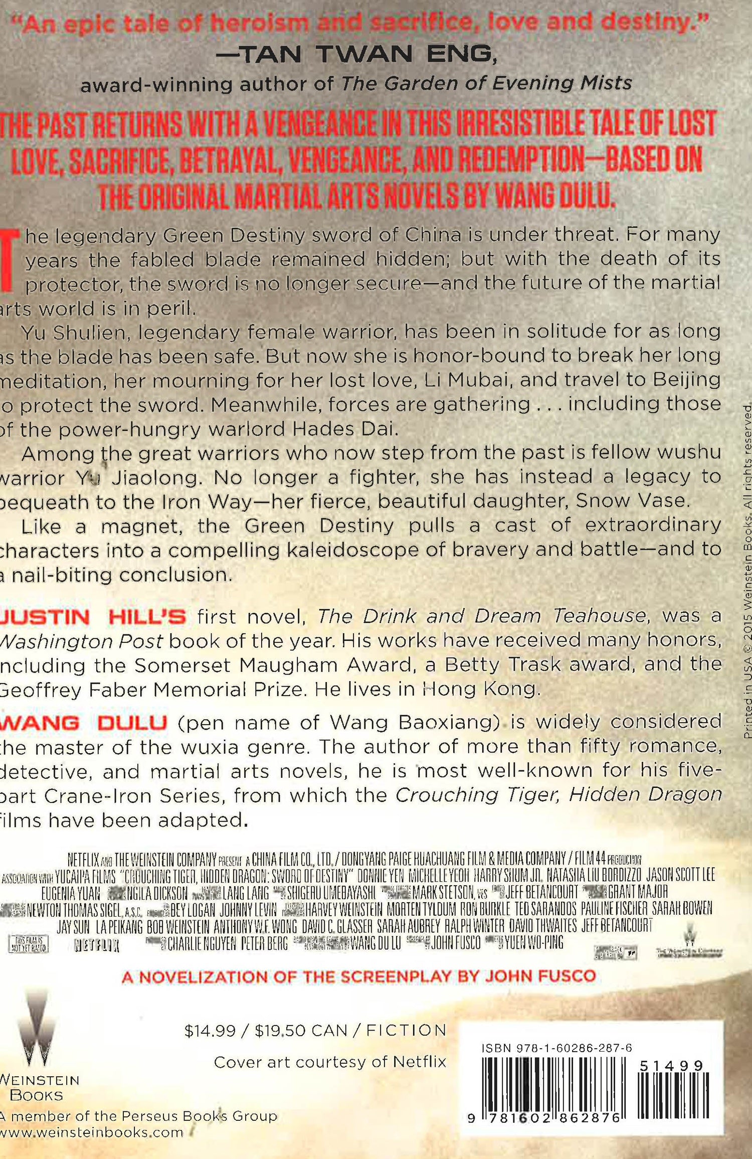 Another life-altering quest, another struggle between honor and lust for power, another generation of warriors forging alliances and enmities. The adventure, romance, and artistry of Crouching Tiger, Hidden Dragon continues in this novelized companion to the first ever Netflix debut film, Crouching Tiger, Hidden Dragon: Sword of Destiny based on the novel by Wang Dulu.Seventeen years after the legendary fighter Mubai dies protecting the world-conquering sword The Green Destiny, four great warriors are called together to guard the formidable weapon once more. The forces surrounding the sword irrevocably altered the life of Shulien, Mubai's lover, but seventeen years later she is still honor-bound to defend the blade from the power-hungry warlord Hades Dai. The young fighters Wei-fang and Snow Vase, switched at birth, also have heritages and inheritances that inextricably link them to both each other and the fate of the sword. And Silent Wolf, Shulien's former fianc?, returns from presumed death to thwart Hades Dai?and rekindle an emotionally isolated Shulien's feelings.Jam-packed with all the hallmarks of an epic adventure?sacrifice, battles, betrayal, vengeance, redemption, and destiny?this saga also explores the deeper meaning of true heroism and virtue. As Wei-fang and Snow Vase search for identity and forge their places in the world of warriors and heroes, Shu-lien and Silent Wolf struggle to reconcile both the traditions and heartbreak of the past with a fragile hope for the future.