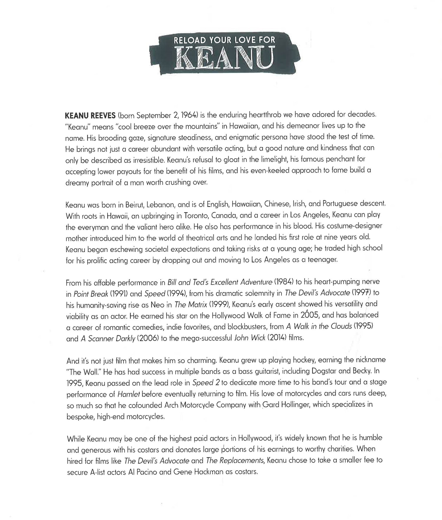 -Find out what makes Keanu so magnetic with biographical information about his life and work