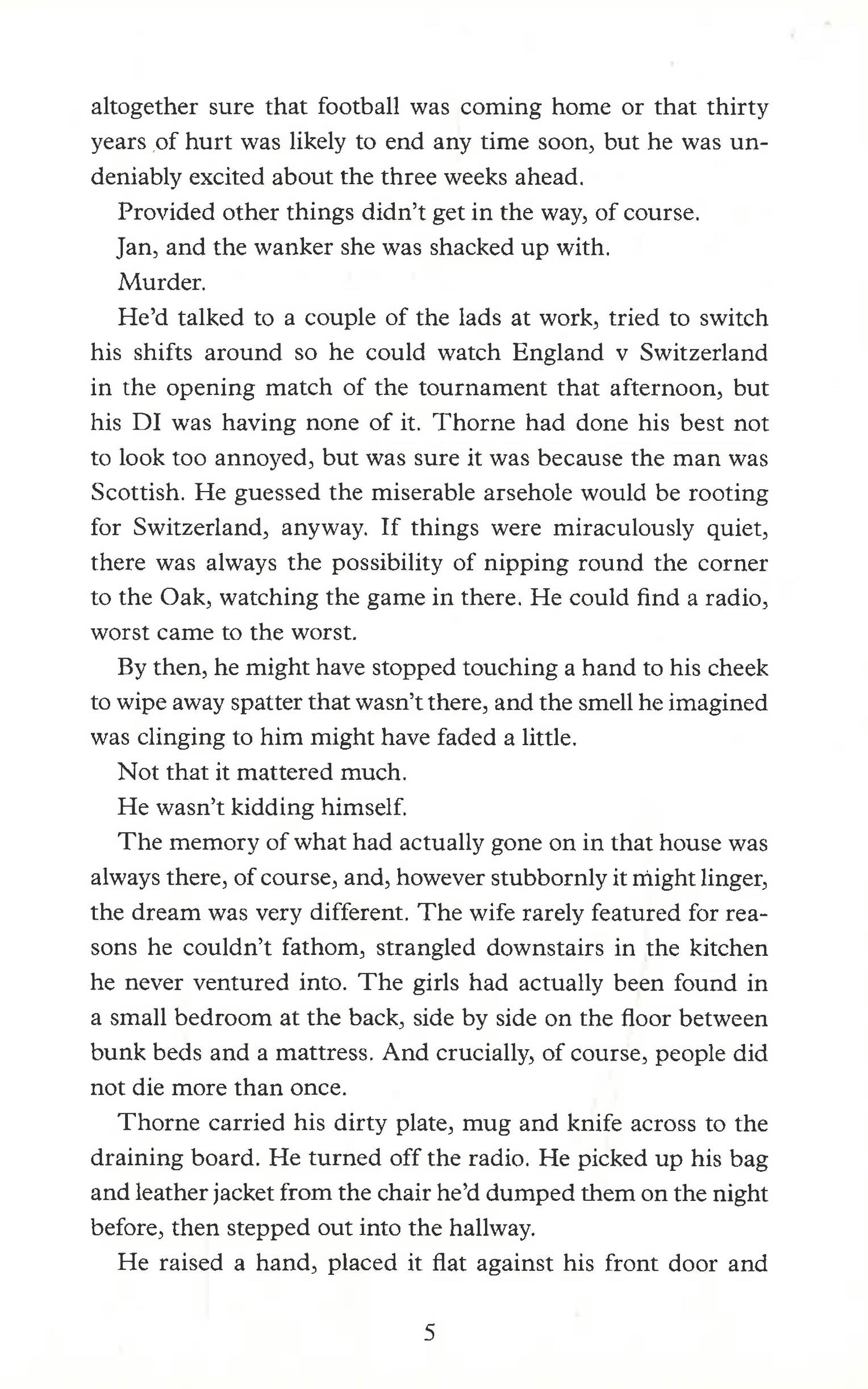 In the summer of 1996, two boys run from a playground into the adjoining woods, but only one comes out. DS Tom Thorne takes on a case that quickly spirals out of control when two people connected with the missing boy are murdered. As London prepares to host the European Soccer Championships, Thorne fights to keep on top of a baffling investigation while also dealing with the ugly fallout of his broken marriage.