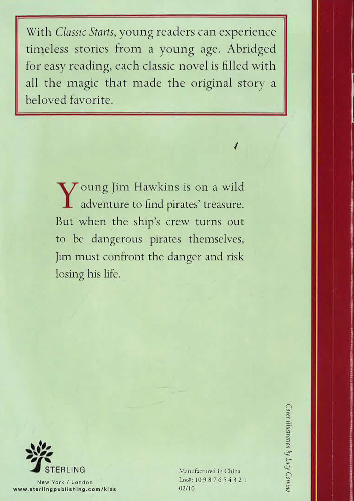 Pirates, buried treasure, and action aplenty - that's what's served up in this fine story, mates, and kids will eat it up. After Jim Hawkins finds the map to a mysterious treasure, he sets sail in search of the fortune. Little does he realize he's boarded a pirate ship, and that surprises and danger await him . . . including a meeting with the unforgettable Long John Silver.